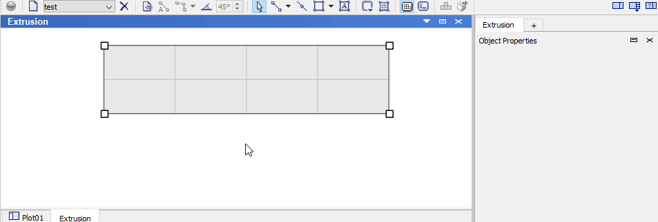 In the front view, points, edges, control points, blocks, images and geometric data sets have editable properties. In the section views (side, top, bottom), the starting point, points, edges, and the extrusion axis have editable properties.