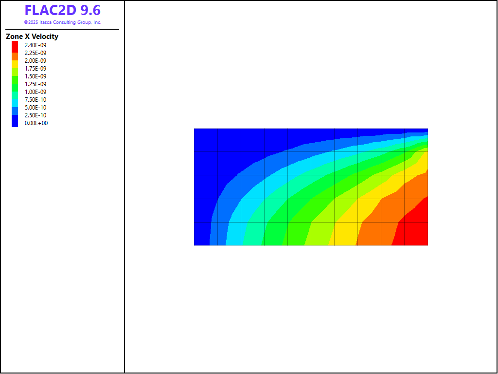 Figure 2: Contours of x-velocity from the FLAC WIPP model.