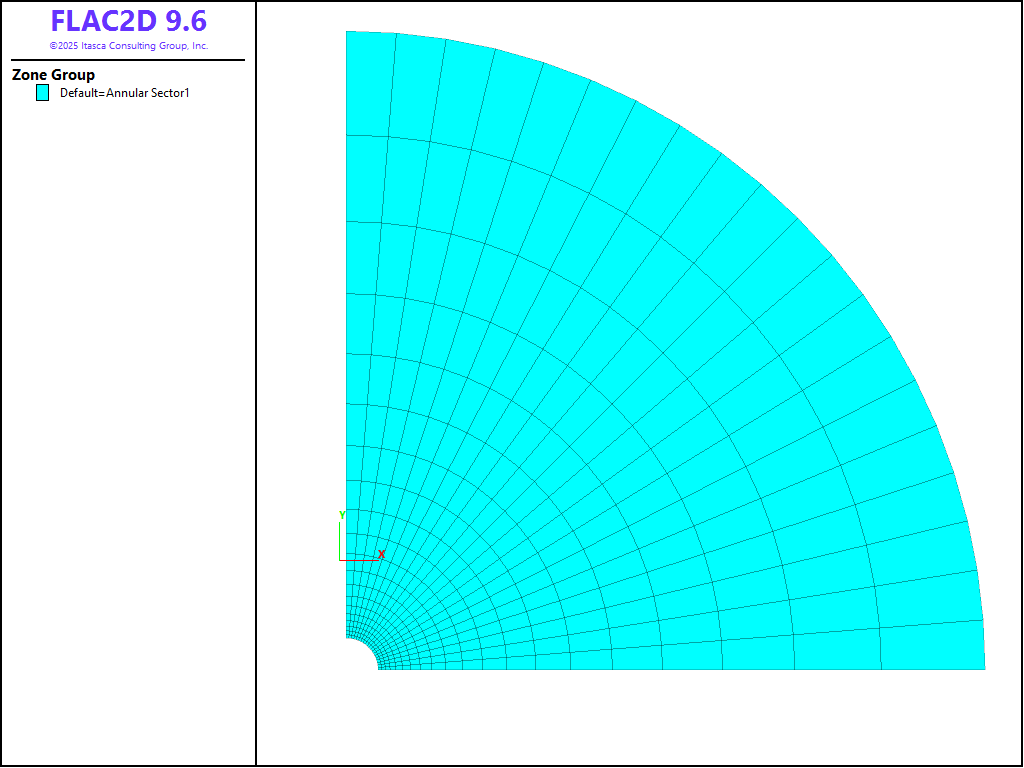 Figure 1: FLAC2D grid for the spherical cavity test.