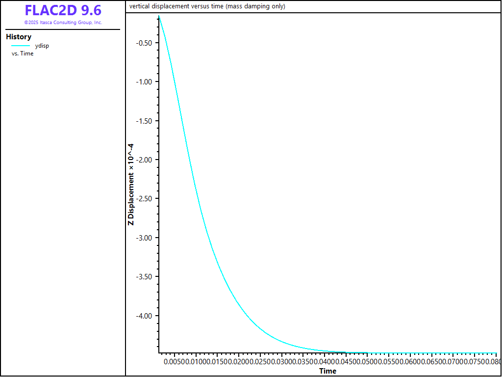 In order to demonstrate how Rayleigh and Local damping works in FLAC3D, the results of several damping cases can be compared. The example consists of a square grid in which gravity is suddenly applied. The conditions are: