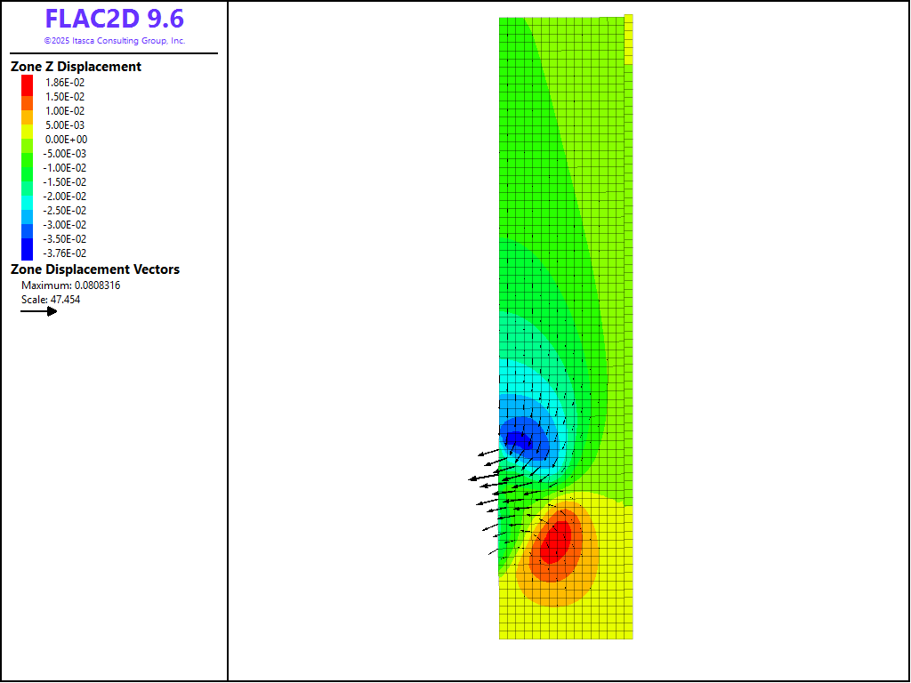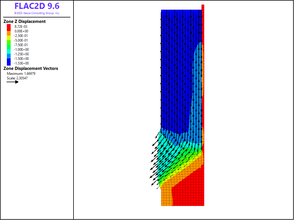 This project reproduces Example 3 from FLAC 8.1. The project file for this example is available to be viewed/run in FLAC2D.[1] The project’s main data files are shown at the end of this example.