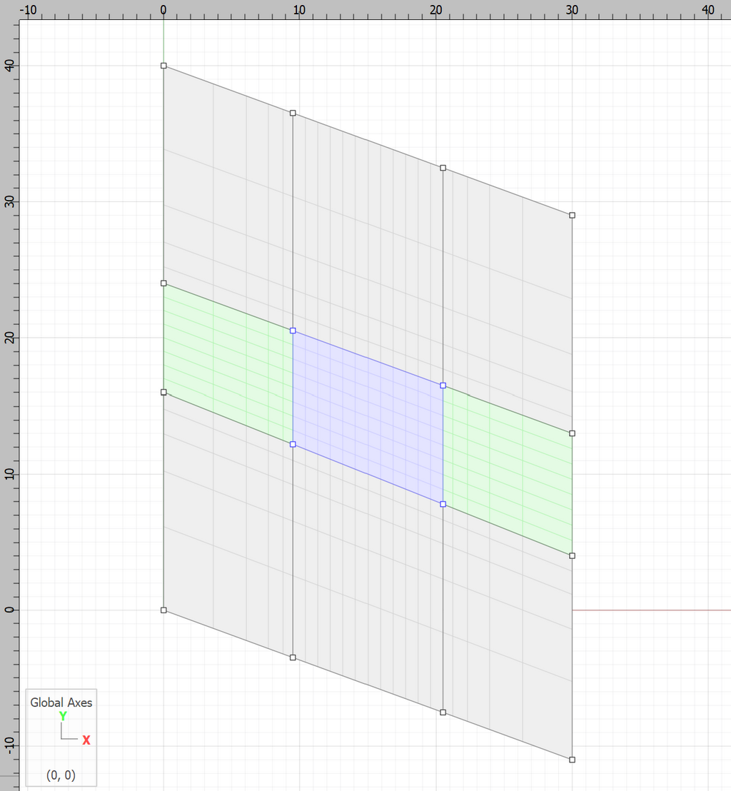 A vertical line is drawn from 9.5,-4 to 9.5,37. Depending on the screen resolution, it may be desirable to the points first and then join them with a line. Any points dangling outside of the model should be deleted.