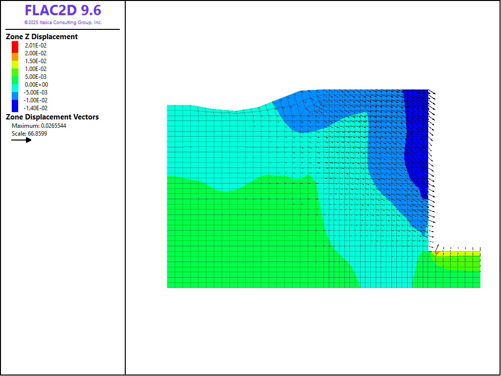 This project reproduces Example 6 from FLAC 8.1. The project file for this example is available to be viewed/run in FLAC2D.[1] The project’s main data files are shown at the end of this example.