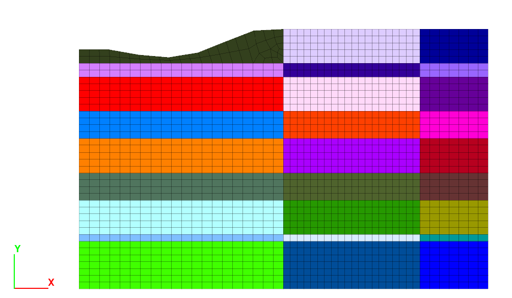 The mesh in the top-left block is unstructured. This could be made a structured mesh by changing the top Points to Control Points. This is exemplified when importing the FLAC 8.1 virtual grid (see mesh generation method 1. above).