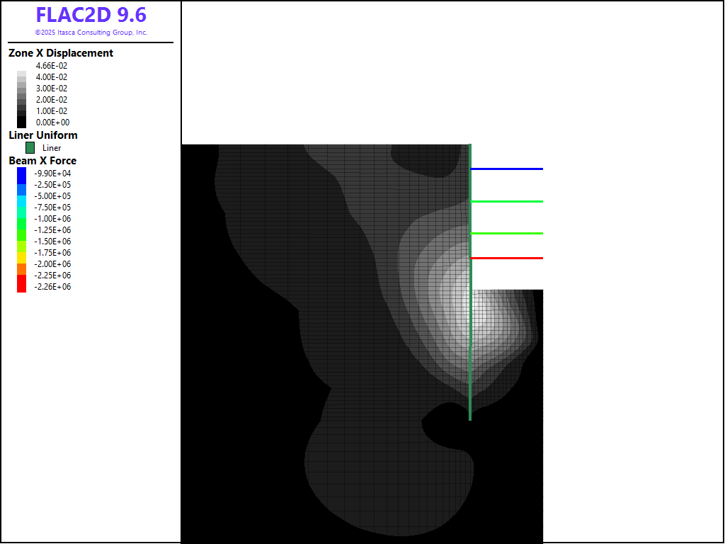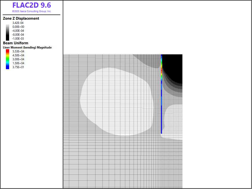 ⇐ Displacements near the Face of an Advancing Shaft (FLAC2D) | Multistage Tunnel Excavation and Support (FLAC2D) ⇒