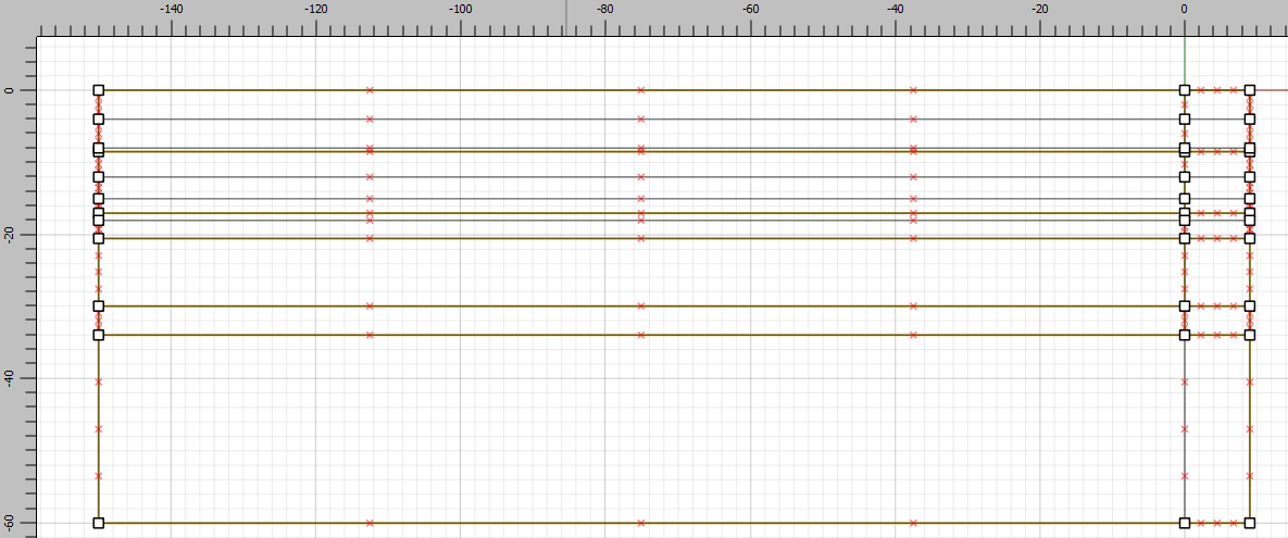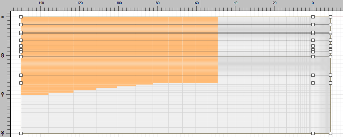 The soil layers are now defined, but the excavation stages are not. Only the right side of the model will be excavated, but to obtain a structured mesh lines should be drawn all the way across the model. So draw the following horizontal lines: