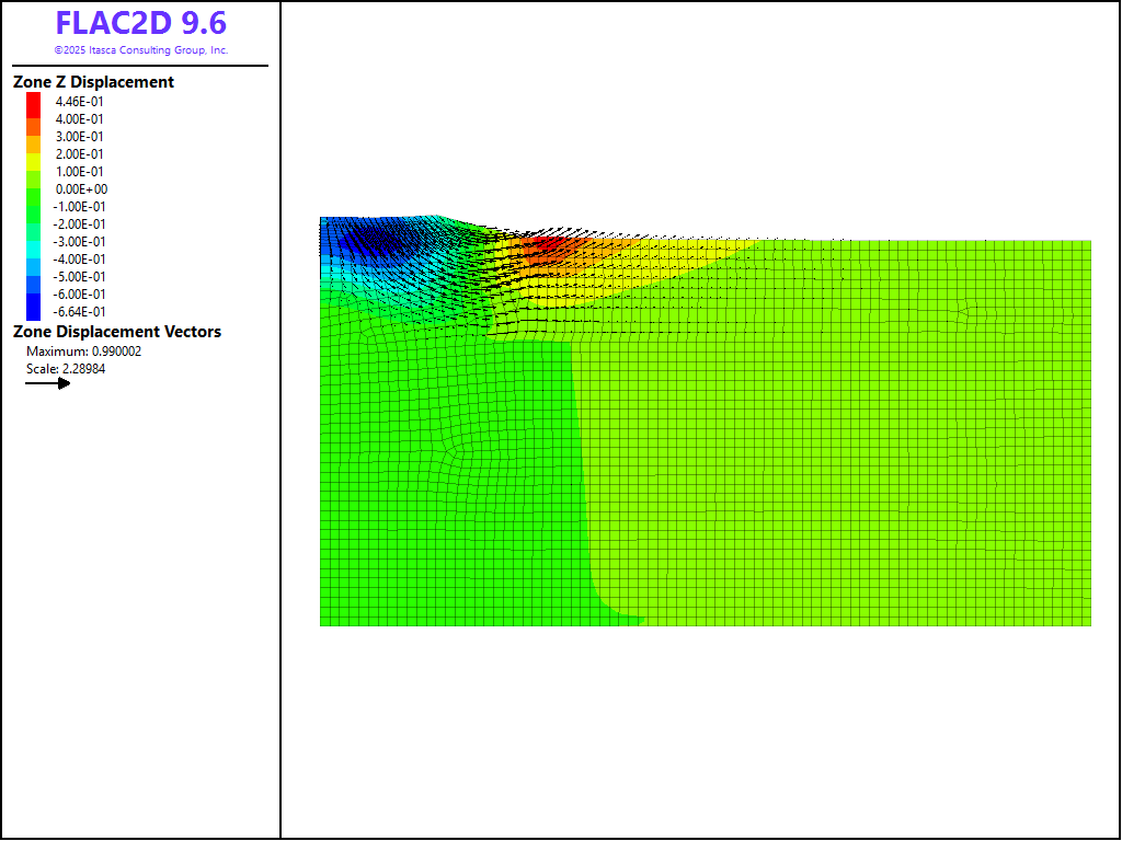 This project reproduces Example 14 from FLAC 8.1. The project file for this example is available to be viewed/run in FLAC2D.[1] The project’s main data file is shown at the end of this example.