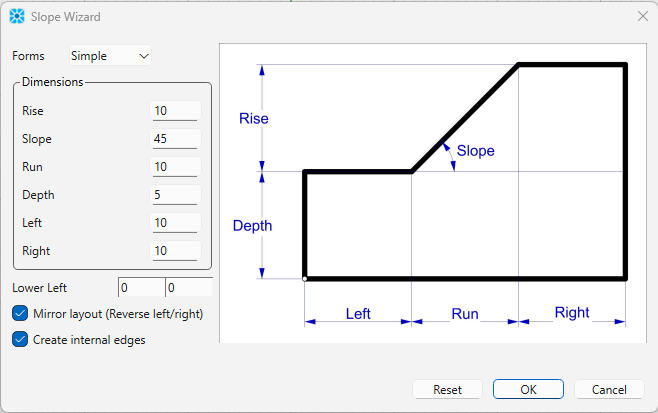 The model is created using the Slope Wizard in i Sketch. The following parameters were used to build the slope.