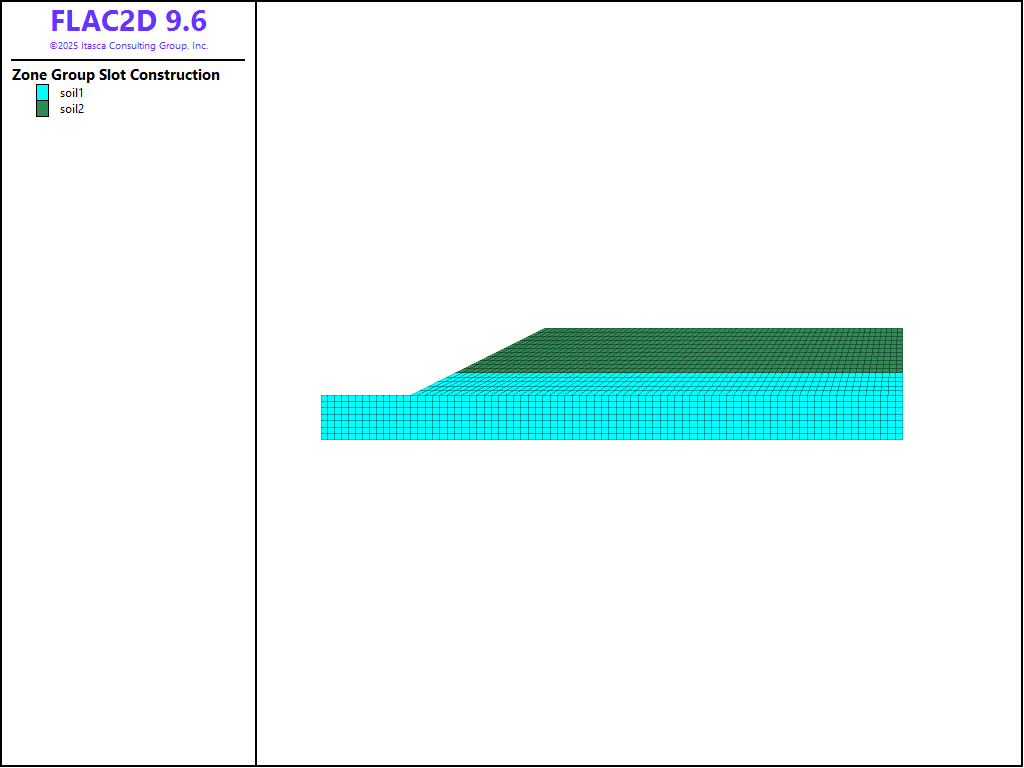 Click on the top block and set its group name to “soil2”. Then assign group name “soil1” to the bottom 3 blocks. Finally, press the create zones button () to create the zones. Save the project and the model state.