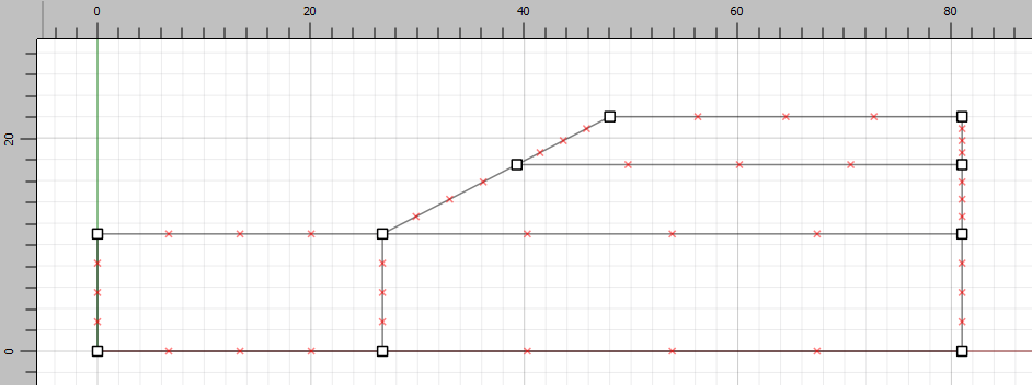 Note that when drawing the vertical line, it will attempt to snap to the grid and will create a slightly non-vertical line. This is acceptable, if a perfectly vertical line is wanted, turn off grid snapping for this operation, or manually change the coordinates after drawing the line.
