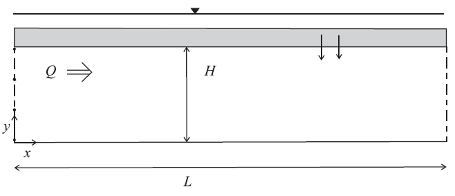 Figure 1. The aquifer has a length \(L\), height \(H\), and