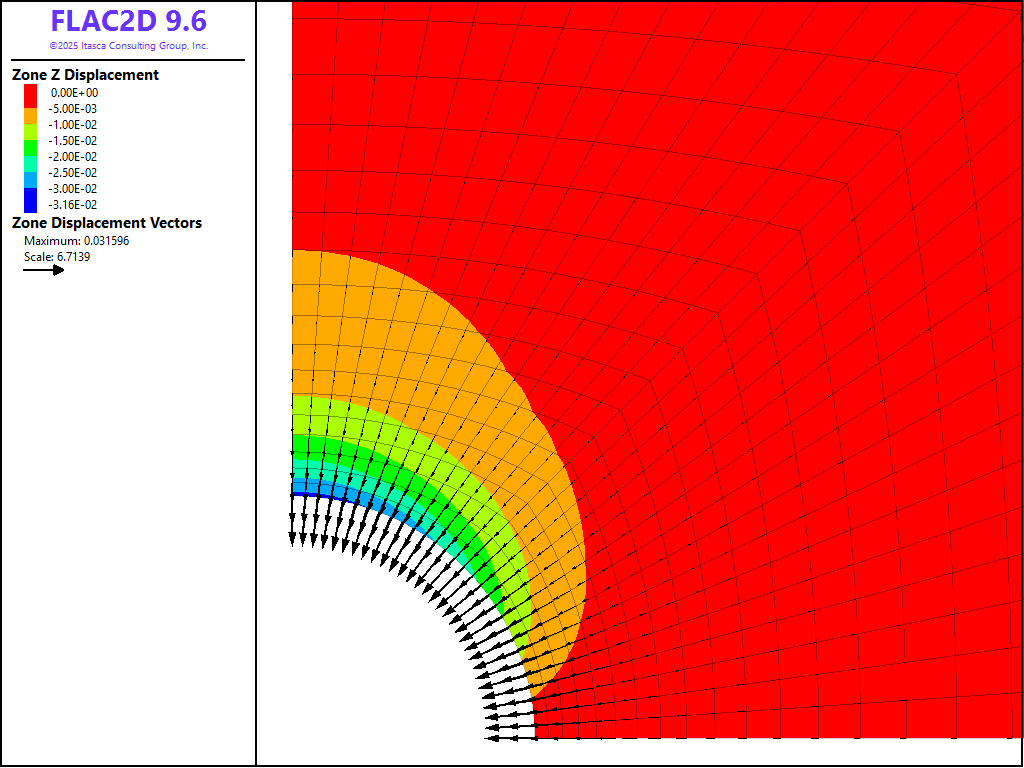 Figure 6: FLAC2D displacement contours and displacement vectors—associated.