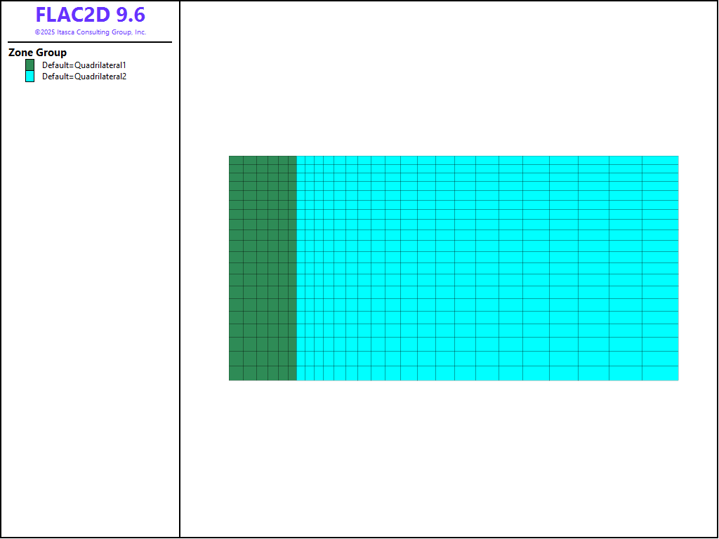 The project file for this example is available to be viewed/run in FLAC2D.[1] The data file used for a structured grid with quadrilateral zones is shown at the end of this example. The remaining data files can be found in the project.