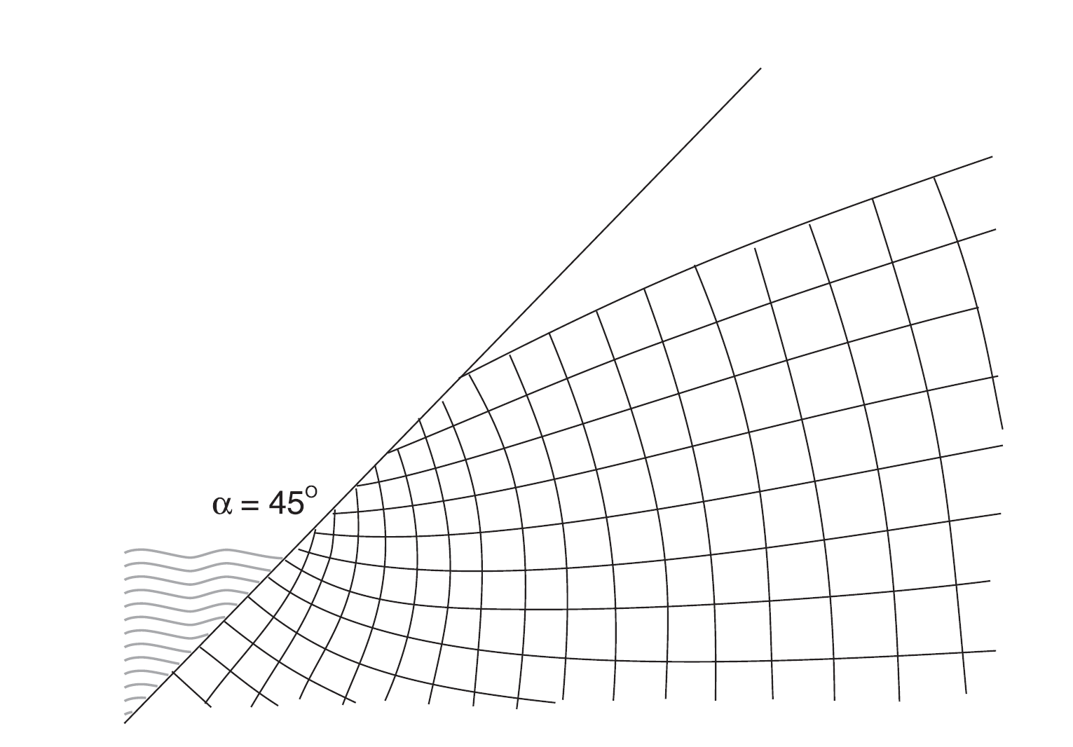 Figure 3 shows a flow net for α = 45 ◦.