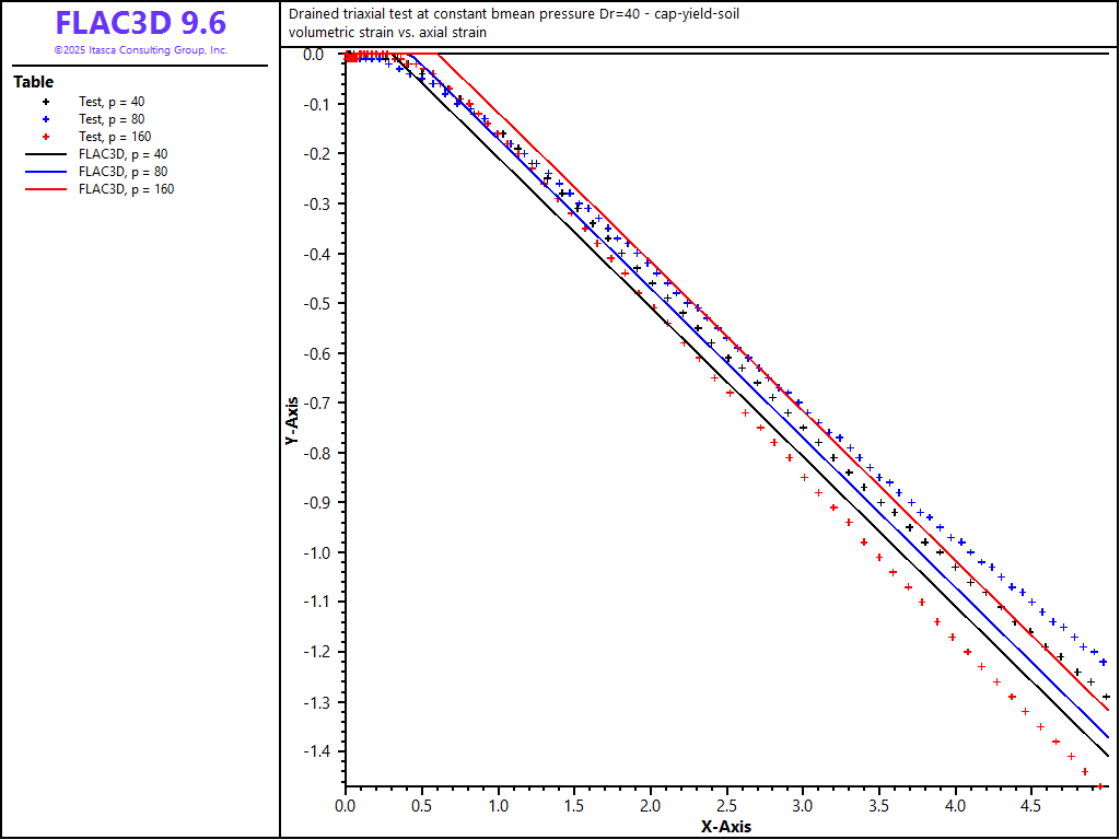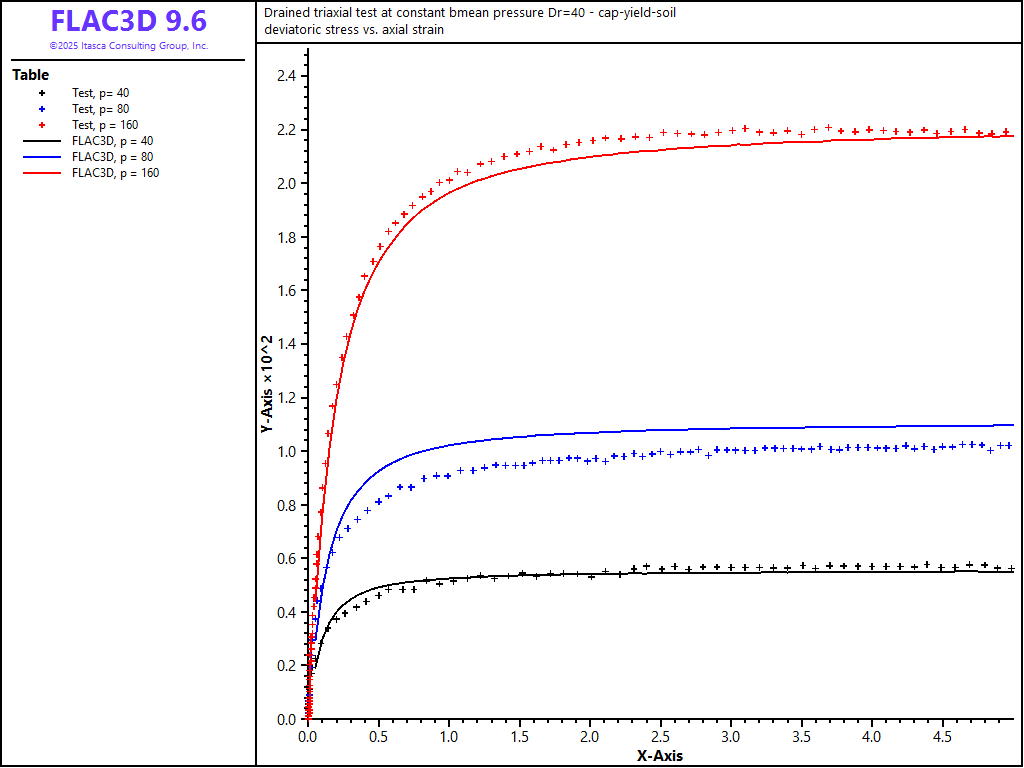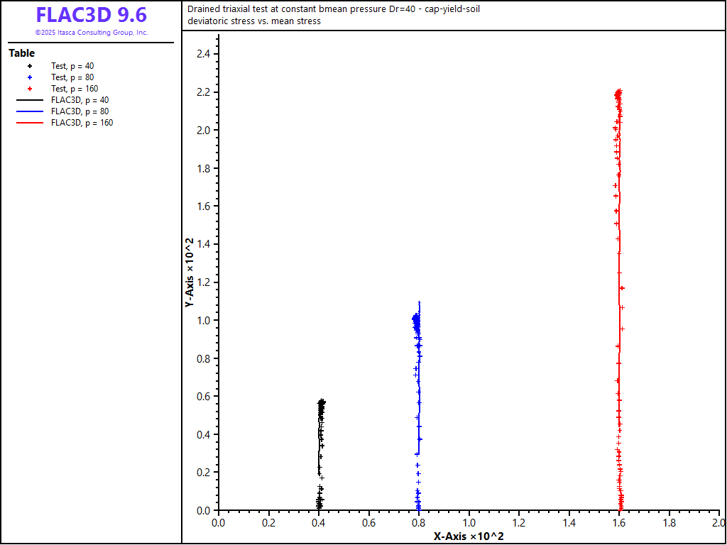 Triaxial experiments are conducted numerically using the CHSoil model at the three levels of constant mean stress, 40, 80, and 160 kPa, for the \(D_r\) = 40% sand. A servo-control is applied to maintain the mean stress constant during the numerical experiments.