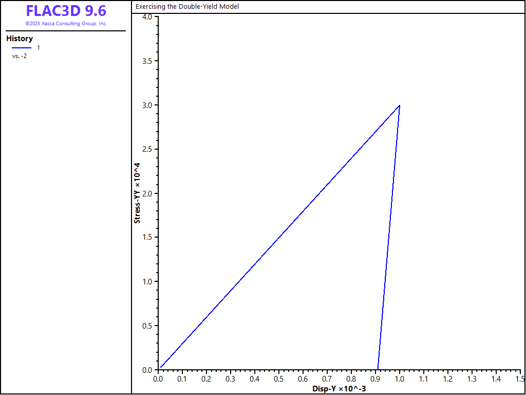 As an illustration, the data file exercises the double-yield model for a material that exhibits a response eleven times stiffer upon unloading than upon loading.