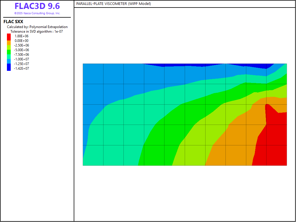 Figure 4: Contours of \(\sigma_{xx}\) from the FLAC WIPP model.