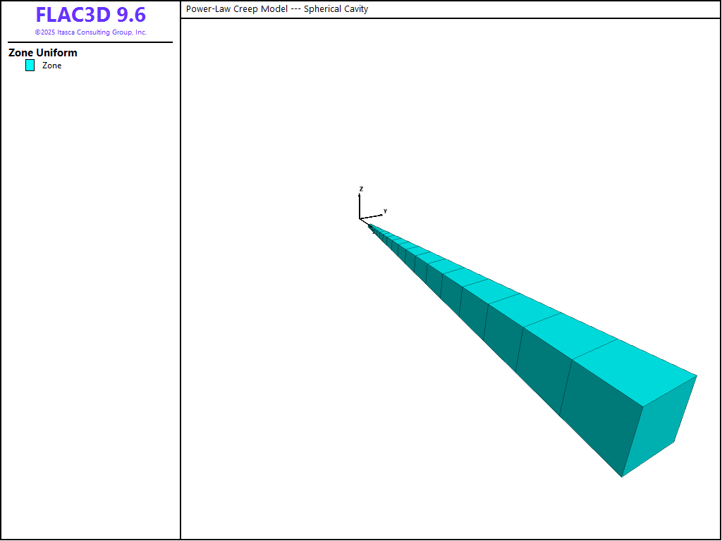 Figure 1: FLAC3D grid for the spherical cavity test.