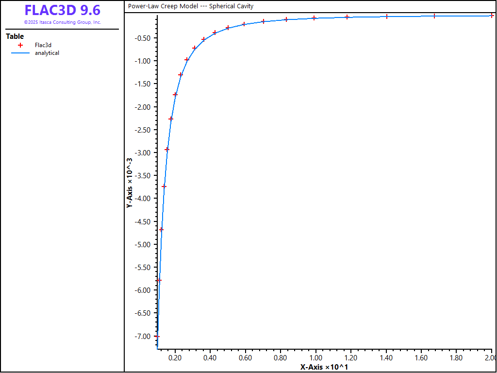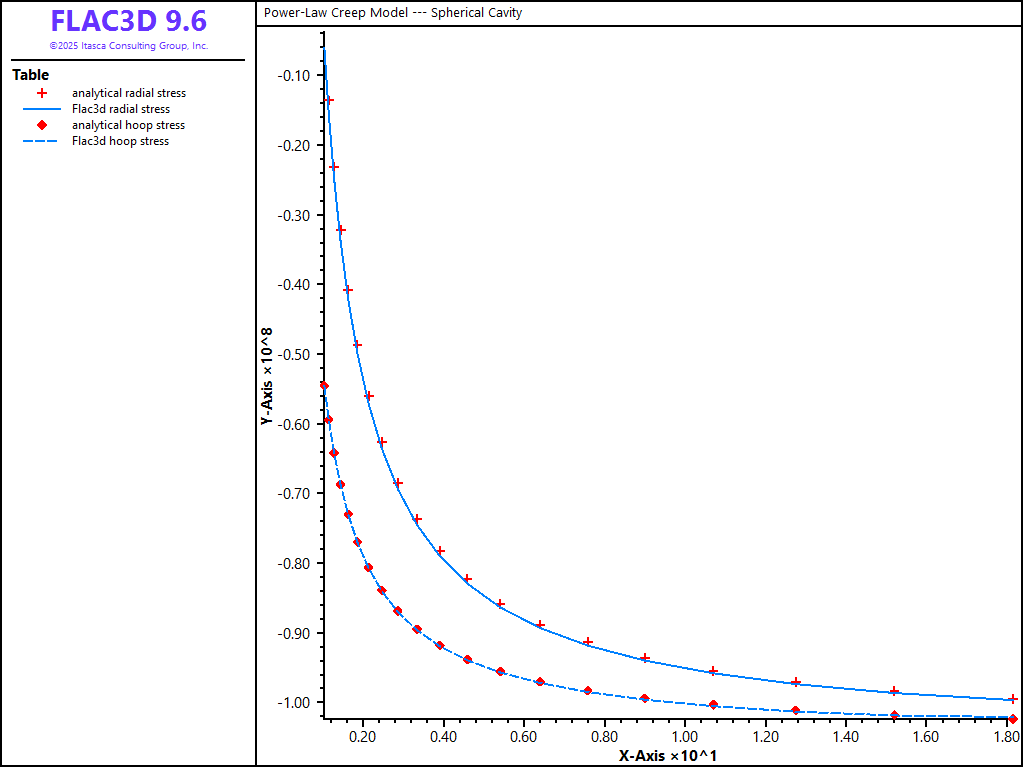 The results are summarized in Figure 2 through Figure 5. Figure 2 and Figure 3 compare the radial velocity and radial and hoop stresses obtained with FLAC3D with the analytical values.
