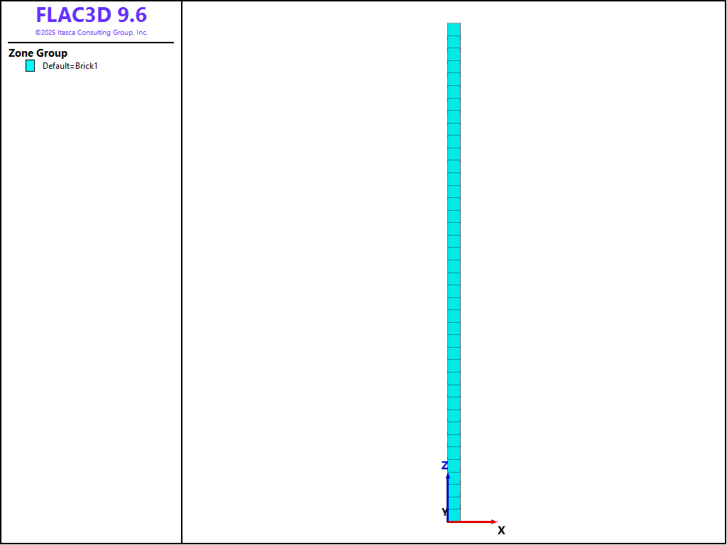 Figure 1: FLAC3D grid for one-dimensional consolidation.