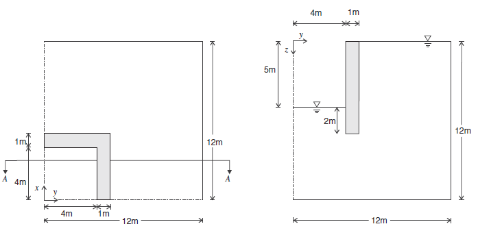 An excavation is planned in a saturated soil layer resting on an impervious base. The soil layer has a thickness of 12 m. The level of the phreatic surface is constant and corresponds to the soil top-surface. The excavation will have a square cross-section of dimensions 8 m × 8 m, and a depth of 5 m. In preparation for this work, the excavation site has been surrounded by vertical impervious walls 1 m thick that extend 2 m below the excavation bottom. After excavation, pumps are installed to lower the water level to the excavation bottom. The problem is to assess the total upheave at the excavation bottom resulting from excavation and drainage.