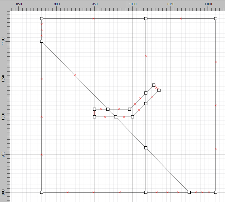 Create the sill pillar by drawing a polyline with points at the following coordinates. Because of the limited resolution of the grid, it may be necessary to click in approximately the right location and move the points afterwards (select them and change the Position in the Object Properties):