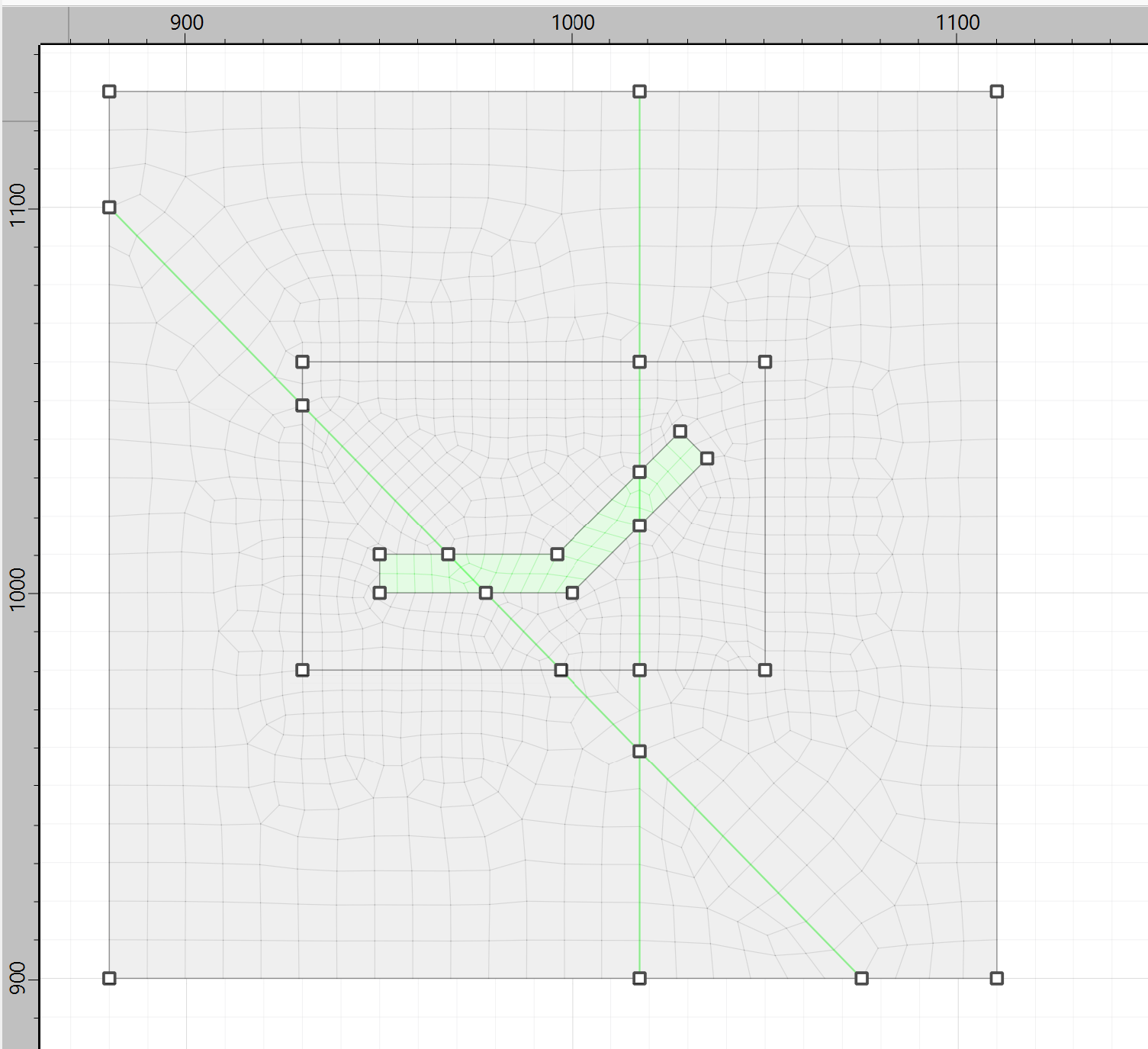 Smaller zones around the pillar are desired, so now a box is drawn to be used to define the high-resolution region later. Draw a box from 930,980 to 1050,1060.