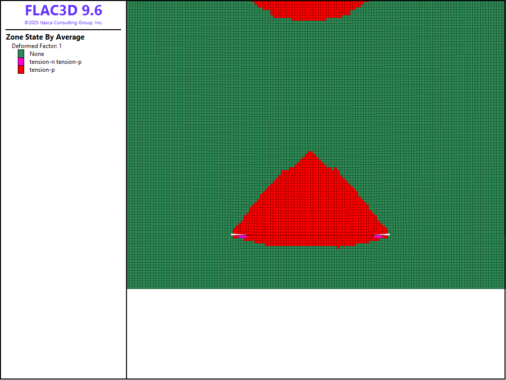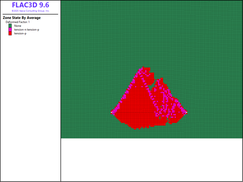 Figure 2: Tension failure zones using Mohr-Coulomb model.