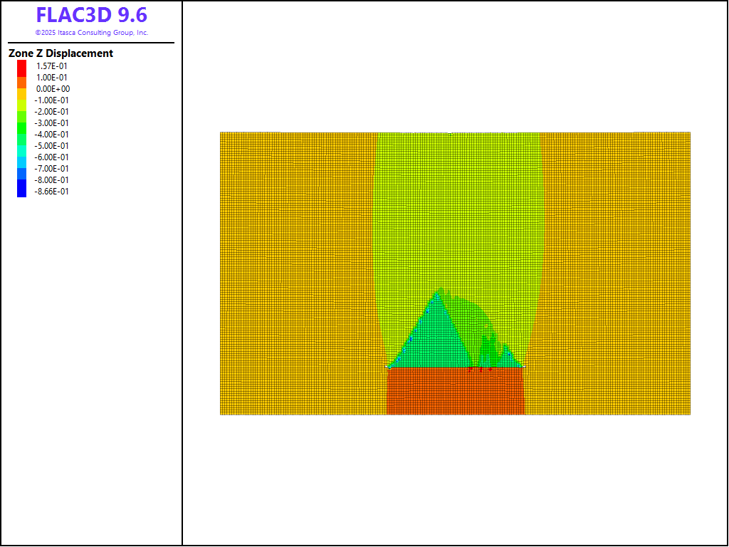 Figure 5: Vertical displacement contour using MohrT model.