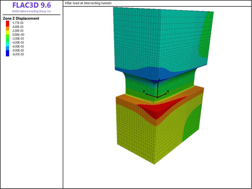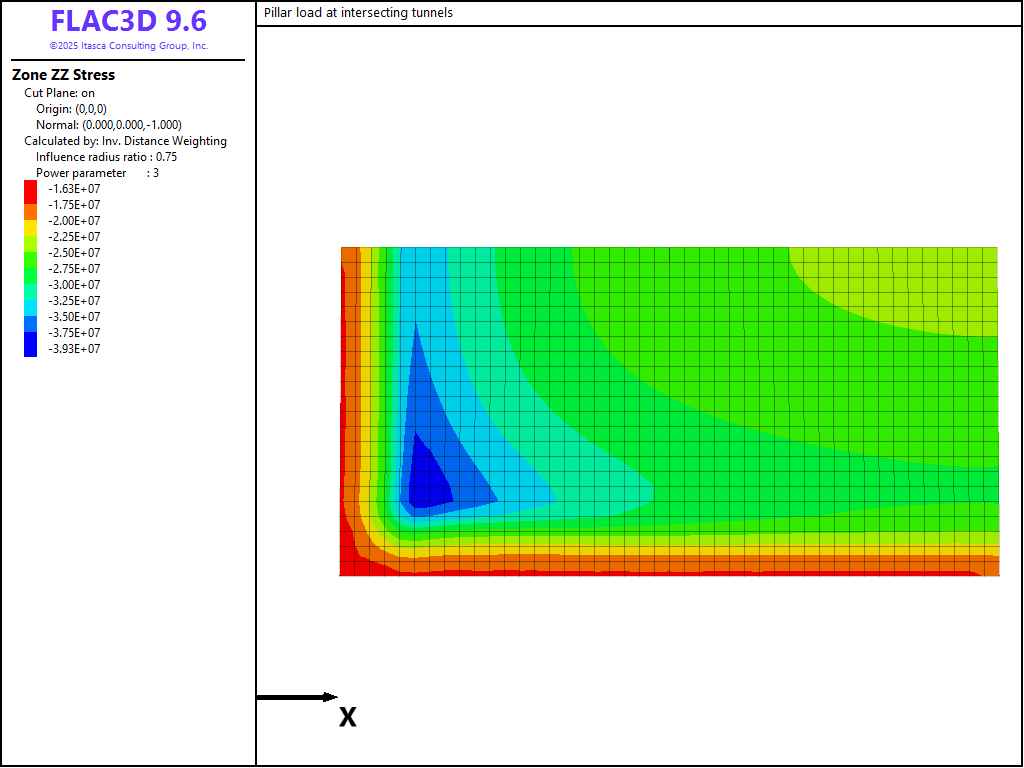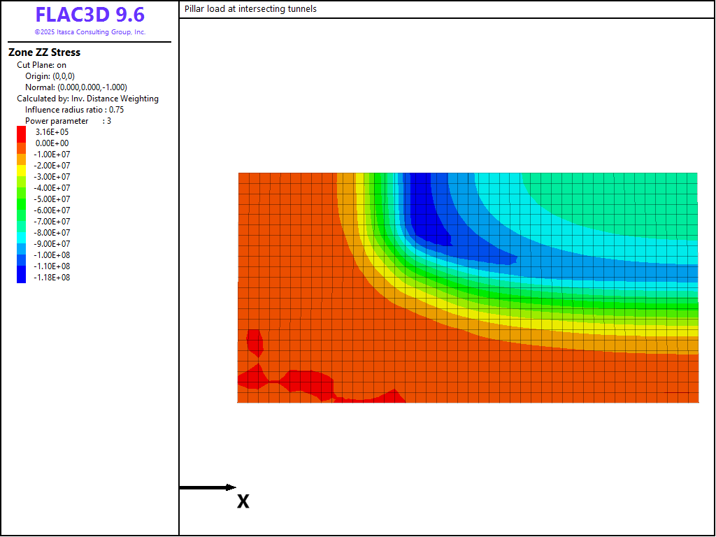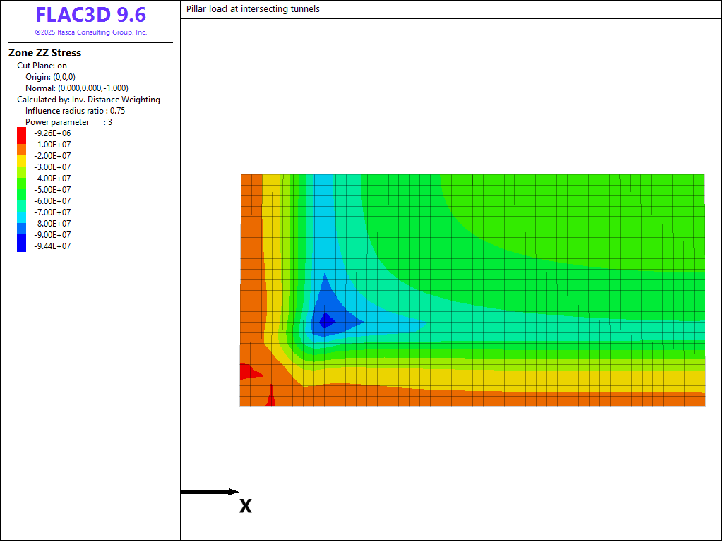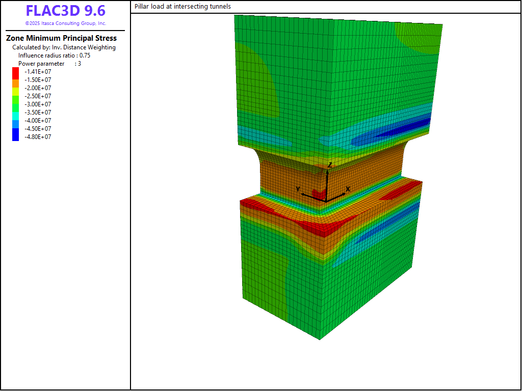 Pillar Loads at Intersecting Tunnels (FLAC3D)