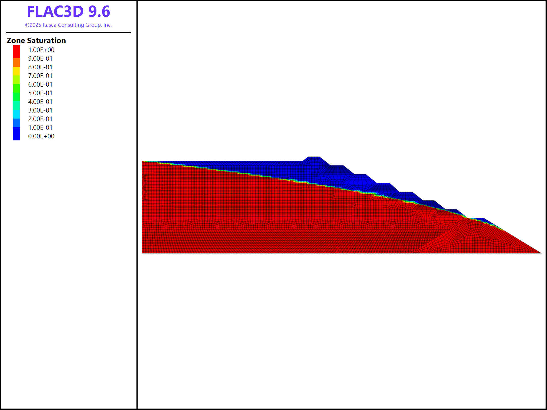 So far, no fluid has been considered. The stable phreatic surface needs to be calculated. This simulation is scripted in the data file fluid.dat.