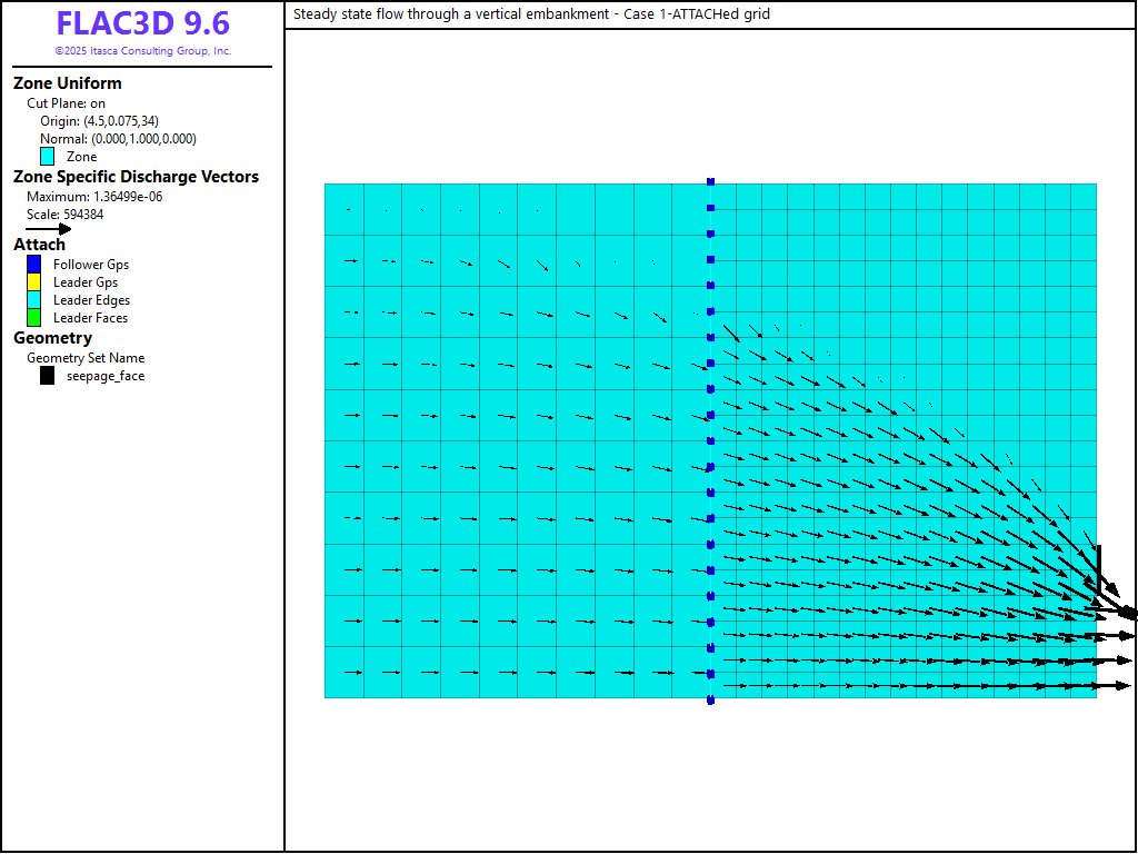 "Steady state flow through a vertical embankment - Case 1-ATTACHed grid"