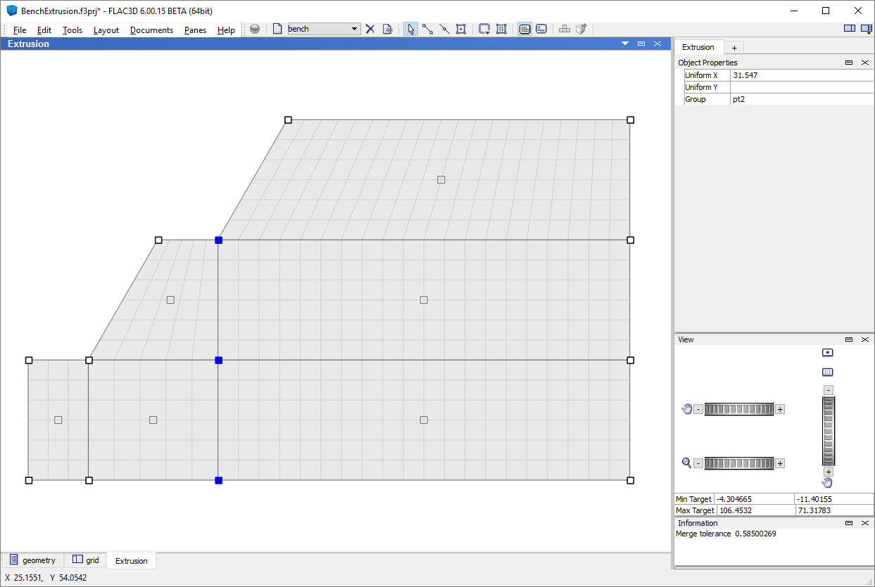 Figure 6: Assignment of group name “weakrock” to zones in the extrusion view.