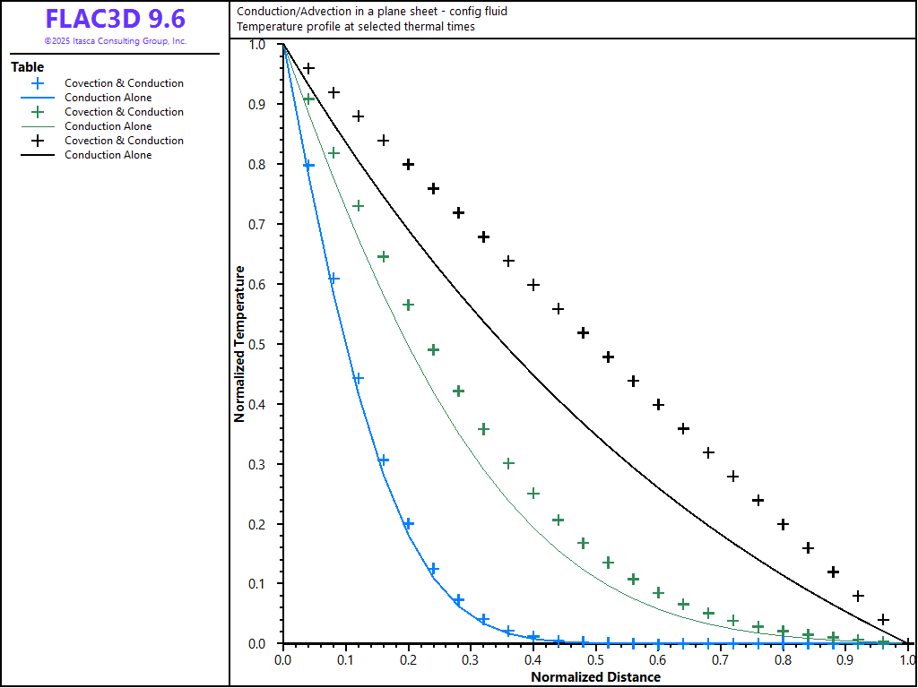 One-Dimensional Solution of Thermal Transport by Forced Convection and Conduction (FLAC3D)