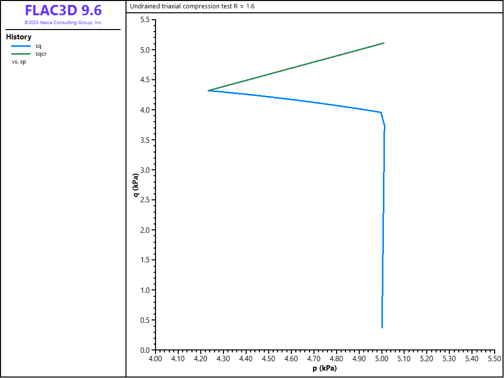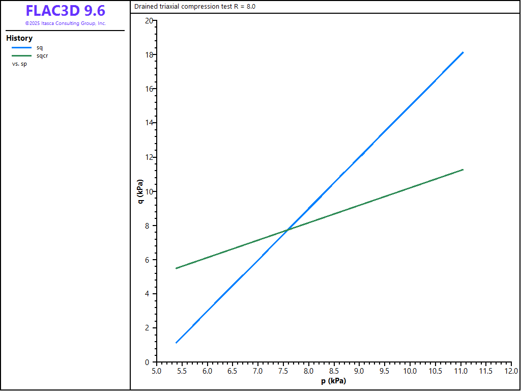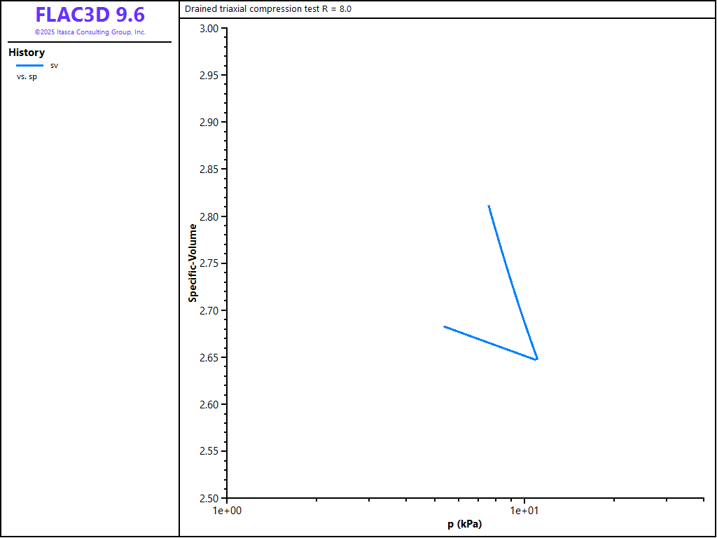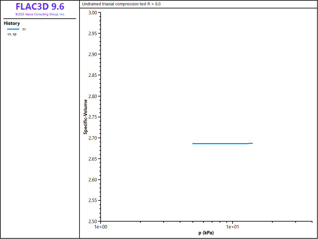Conventional drained and undrained triaxial compression tests on Cam-clay soil samples are modeled using FLAC3D. The stresses and specific volume at the critical state are compared with analytical predictions. The responses of both a lightly (LOC) and a heavily (HOC) over-consolidated specimen are considered. This set of problems tests the prediction accuracy of the modified Cam-clay model in FLAC3D.