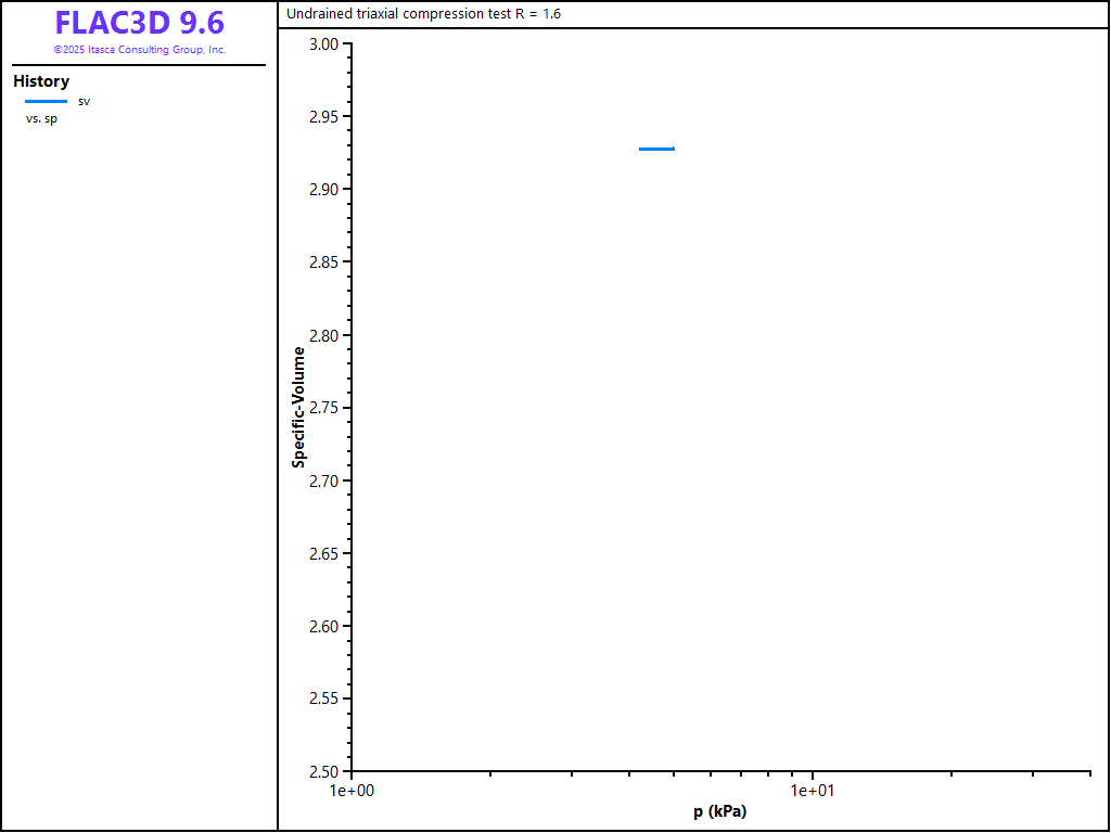 Figure 8: Diagram for (\(\ln p, v\)) for R = 1.6—undrained test.