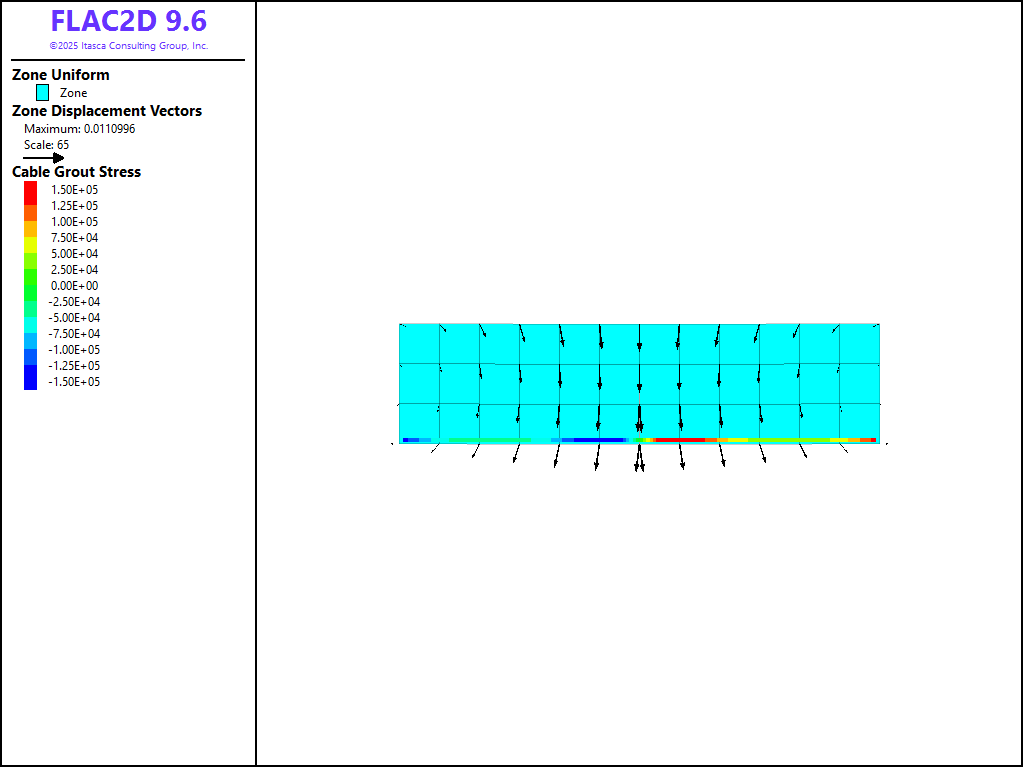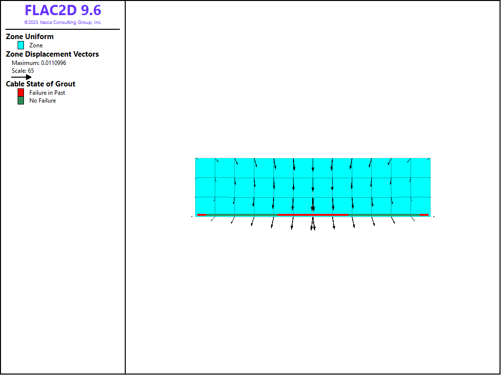 Figure 4: Final grout slip state (reduced grout cohesive strength).