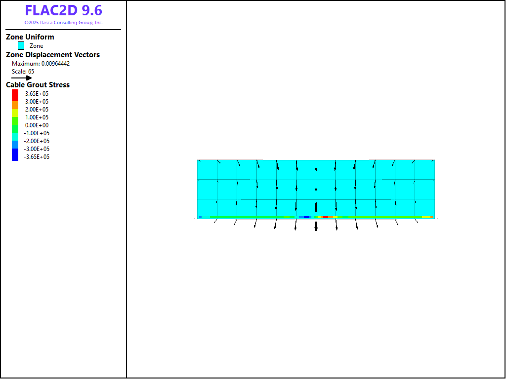 Figure 5: Final grout stress distribution (reduced grout cohesive strength).