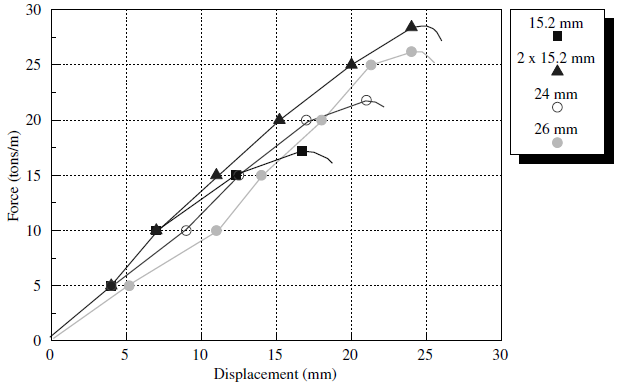 Figure 7: Pull-test on 15.2 mm cable, \(p\)’ = 2 MN/m2.