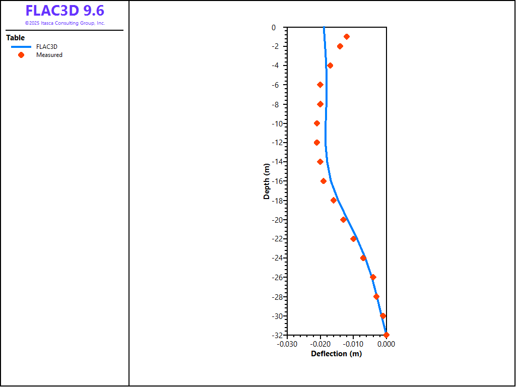 The benchmark exercise described by Schweiger (2002) consisting of a deep excavation problem in Berlin sand is the base for this example application. The geometry, basic assumptions, and computational steps adopted for this example are taken from the benchmark exercise. The results for wall deflection and surface settlements are compared to measurements. The example shows the applicability of the CYSoil model and the Plastic-Hardening (PH) model for deep excavation problems.