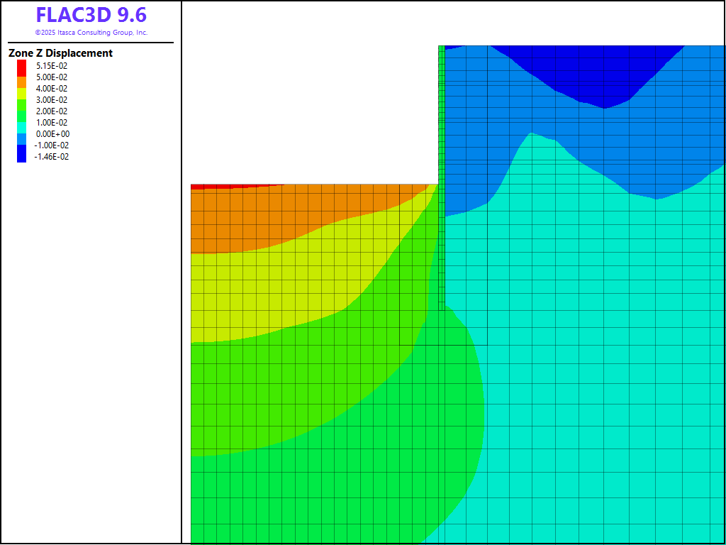 The project file for this example is available to be viewed/run in FLAC3D.[1] The project’s main data file is shown at the end of this example.