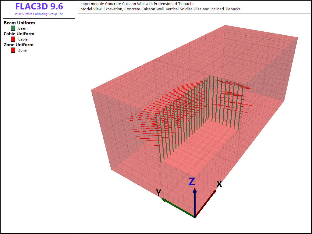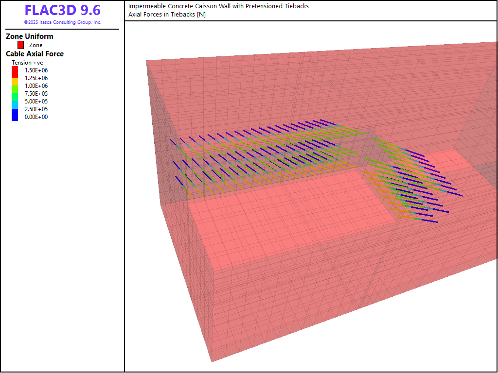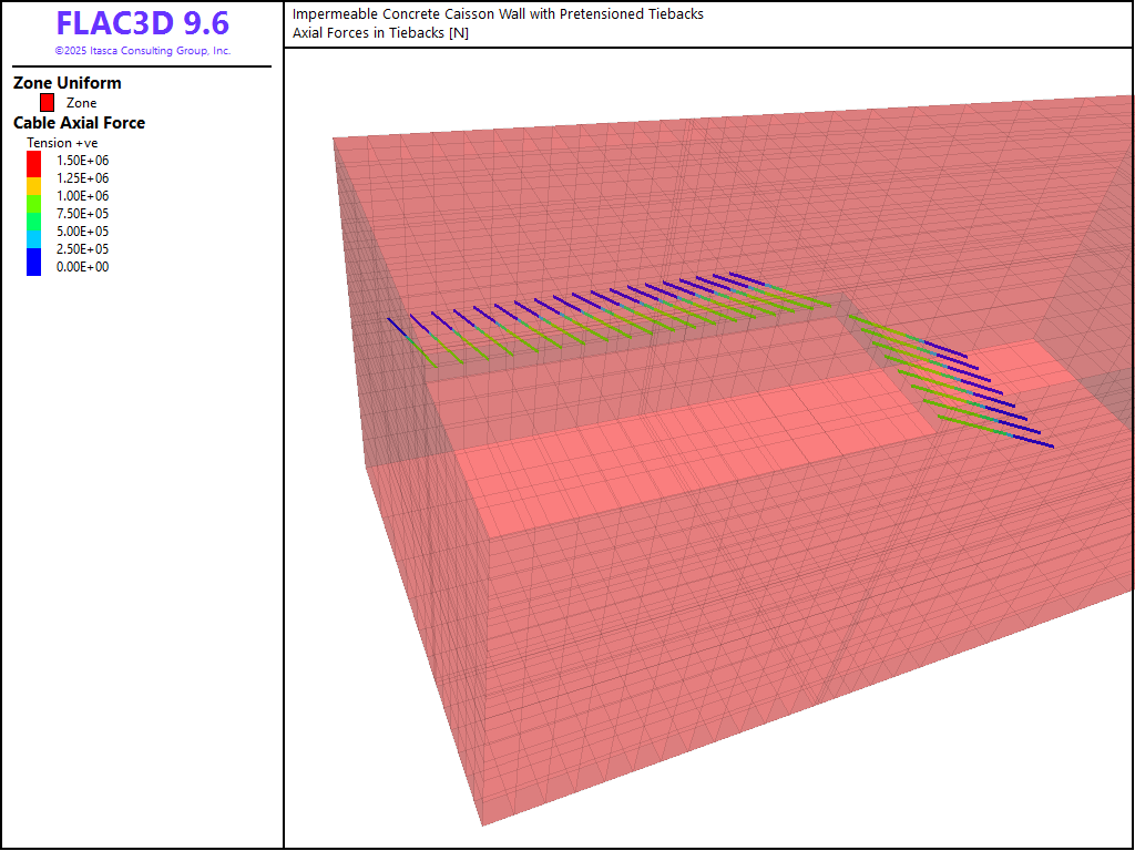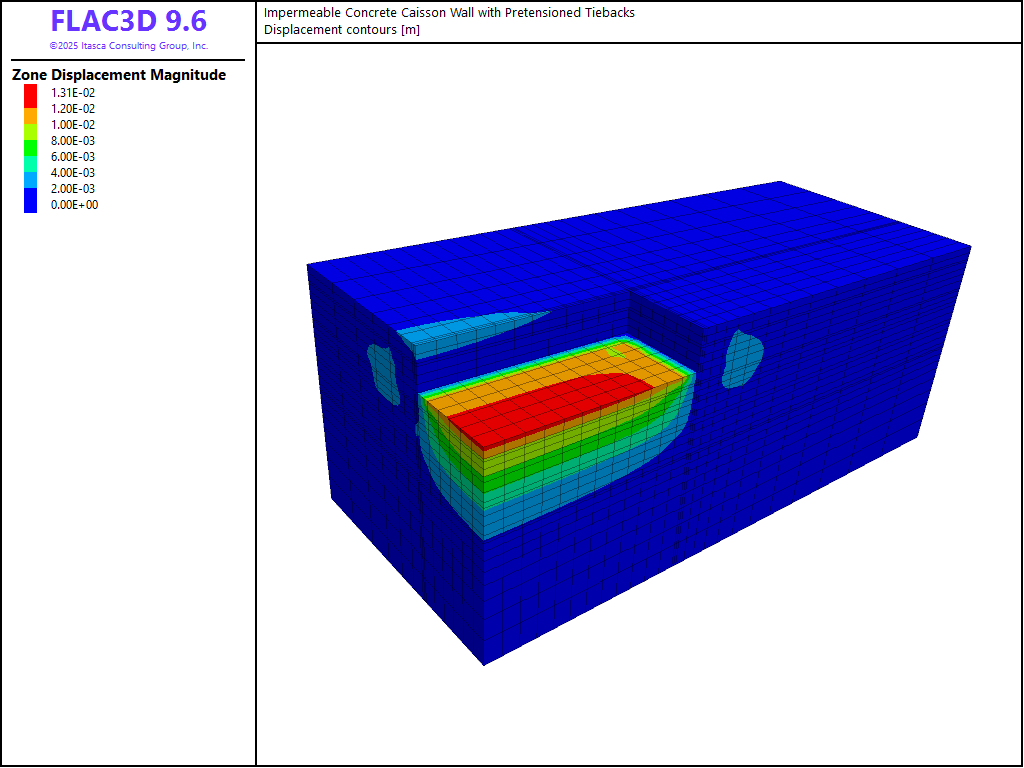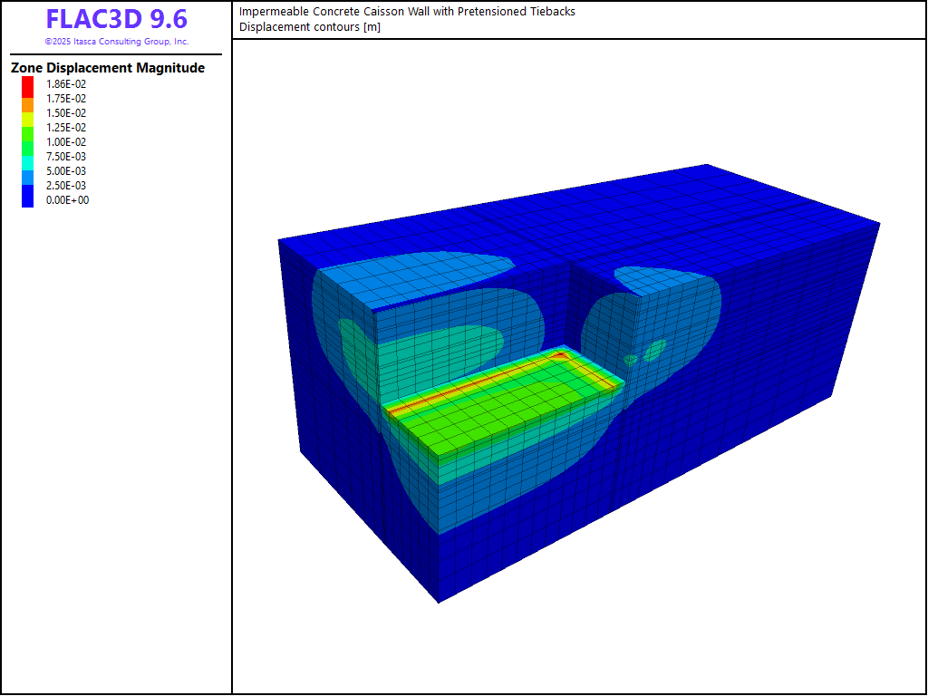 Impermeable Concrete Caisson Wall with Pretensioned Tiebacks (FLAC3D)