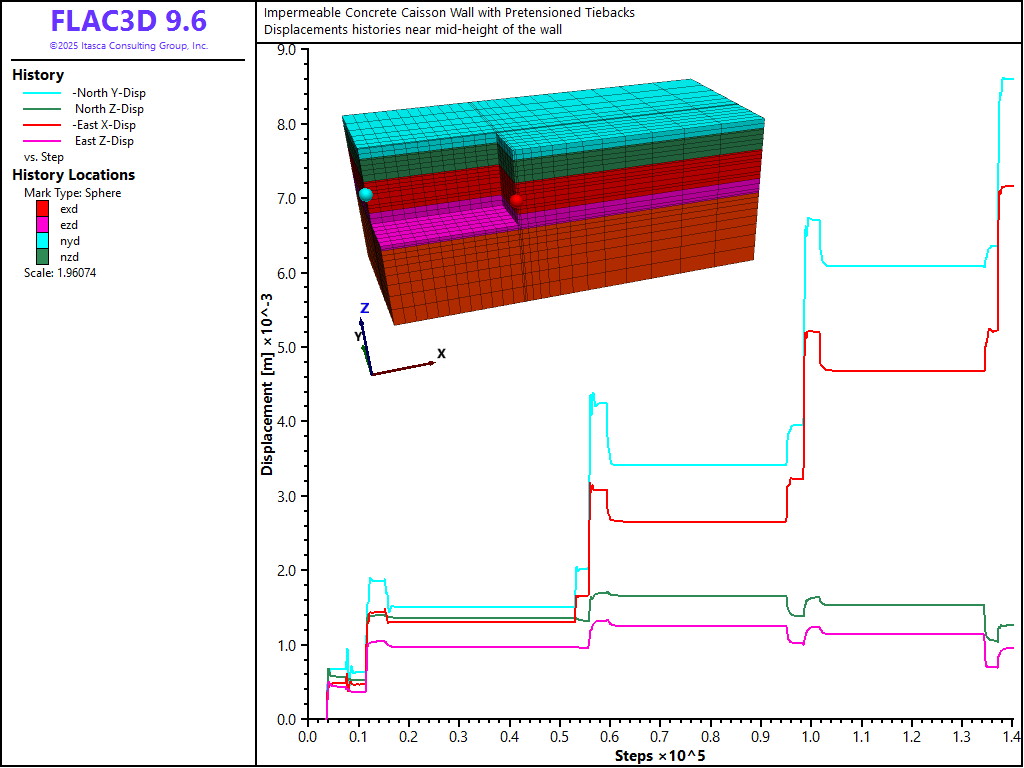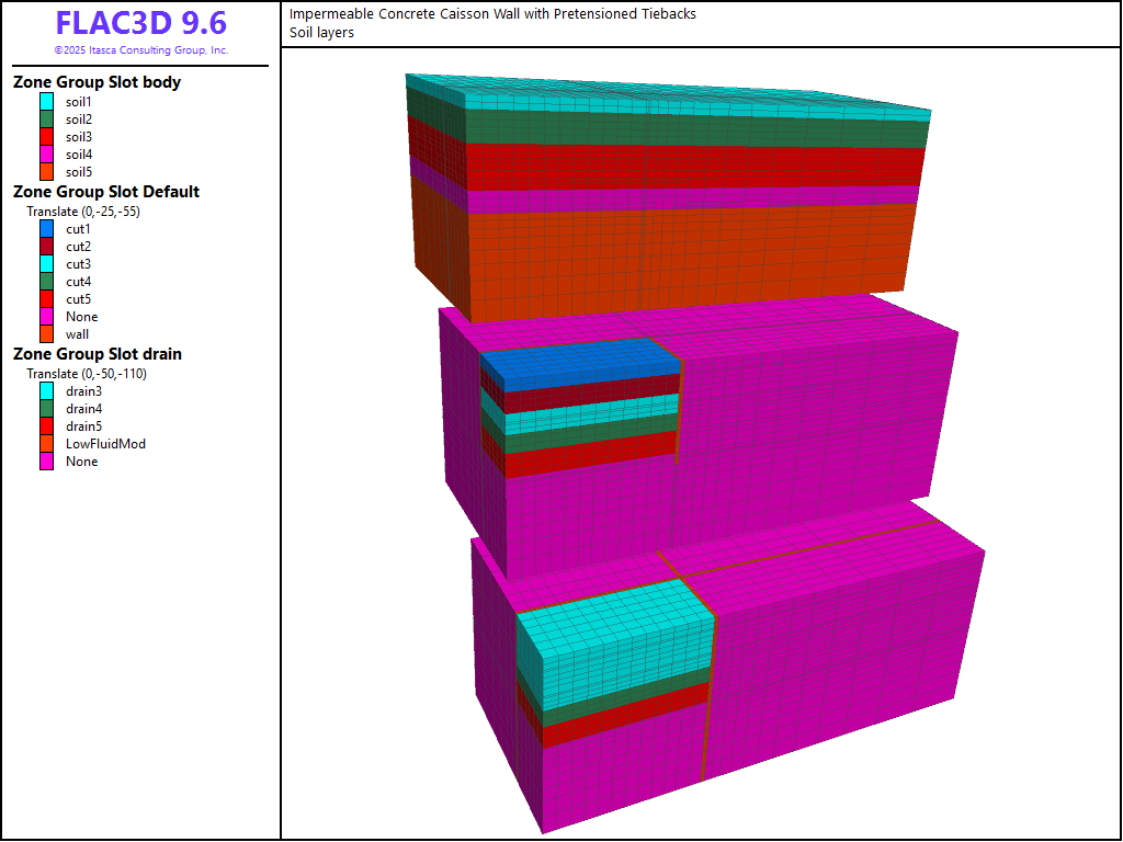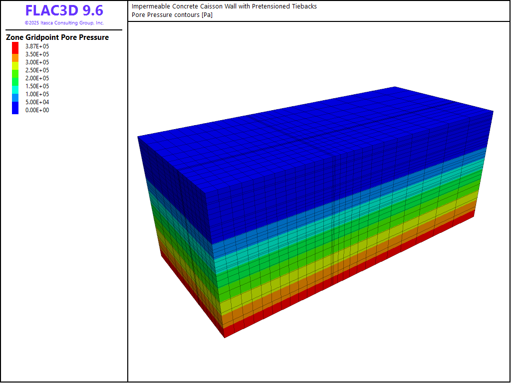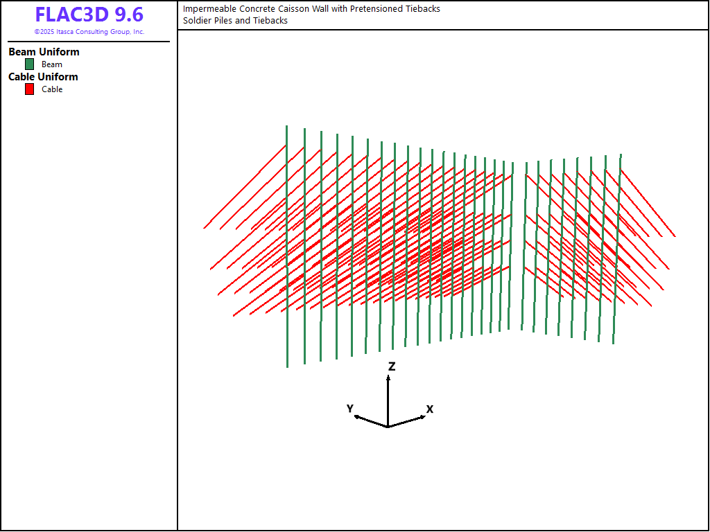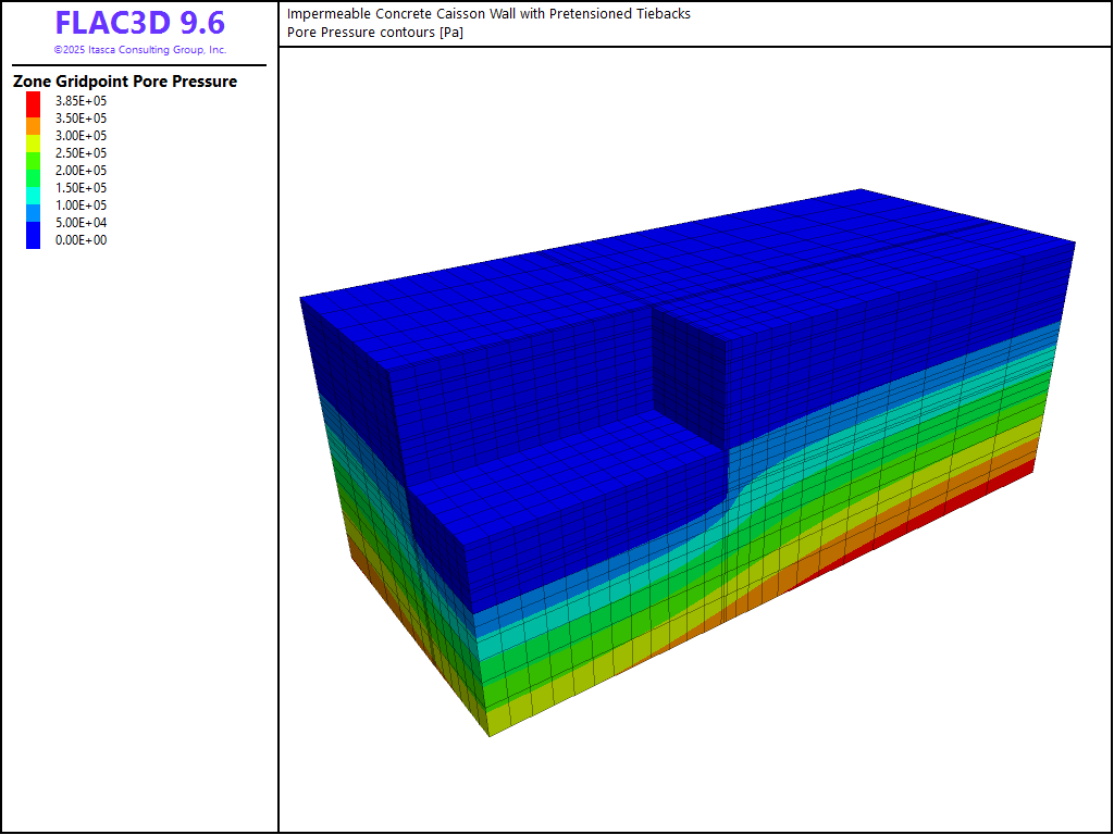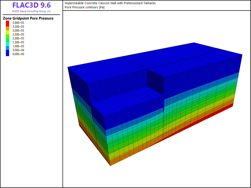 Impermeable Concrete Caisson Wall with Pretensioned Tiebacks (FLAC3D)