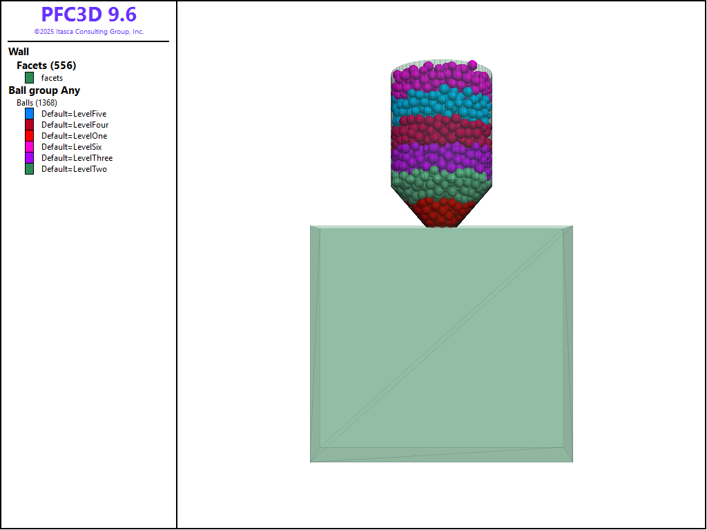 The following figures show the equilibrated balls in the hoppers prior to discharge.