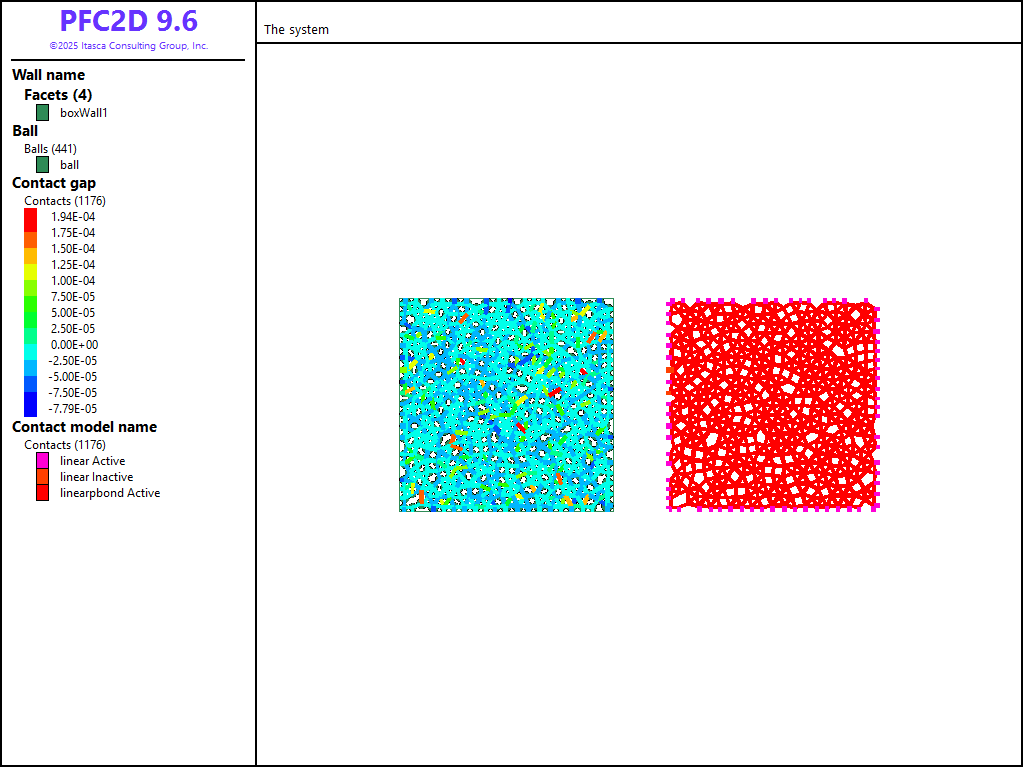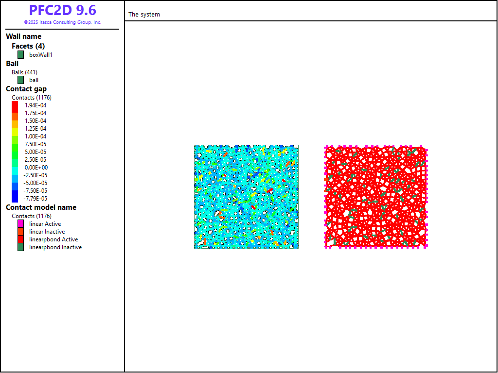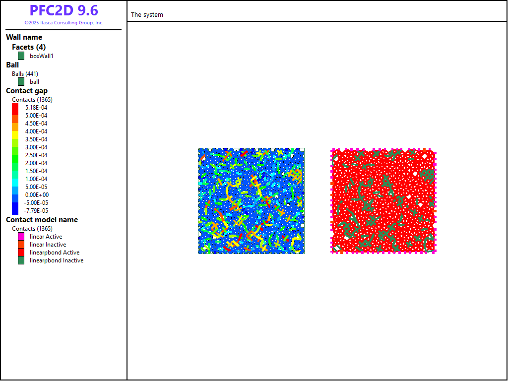 Figure 9: State of the system after bonding contacts (using the linear parallel-bond contact model) with a bond installation gap of 5 × 10-5.