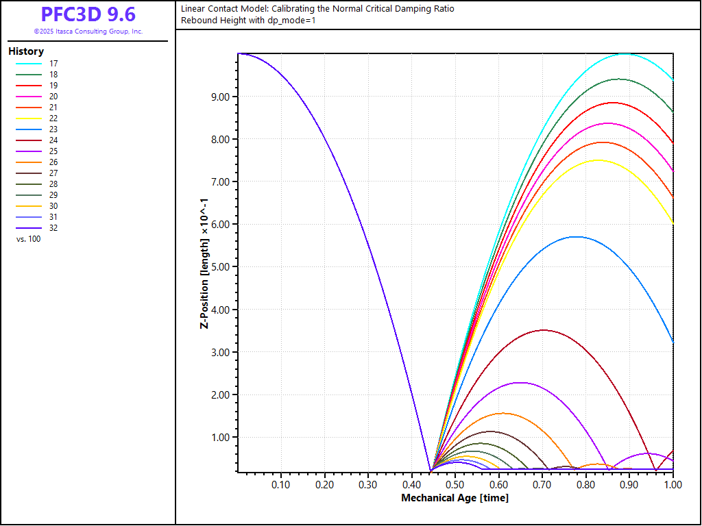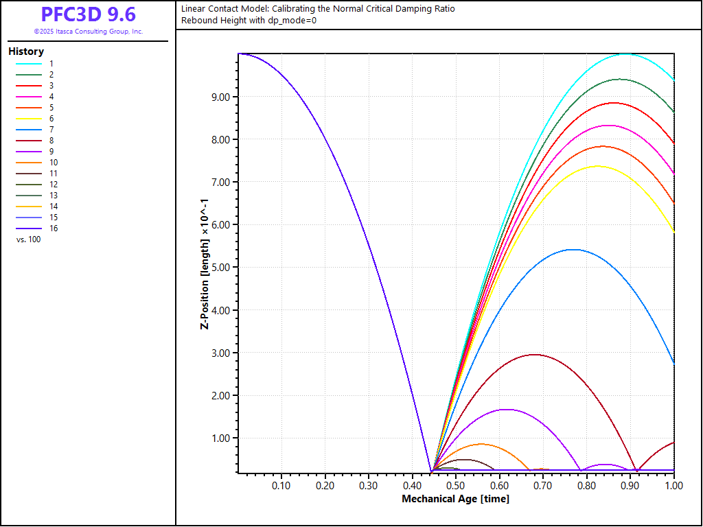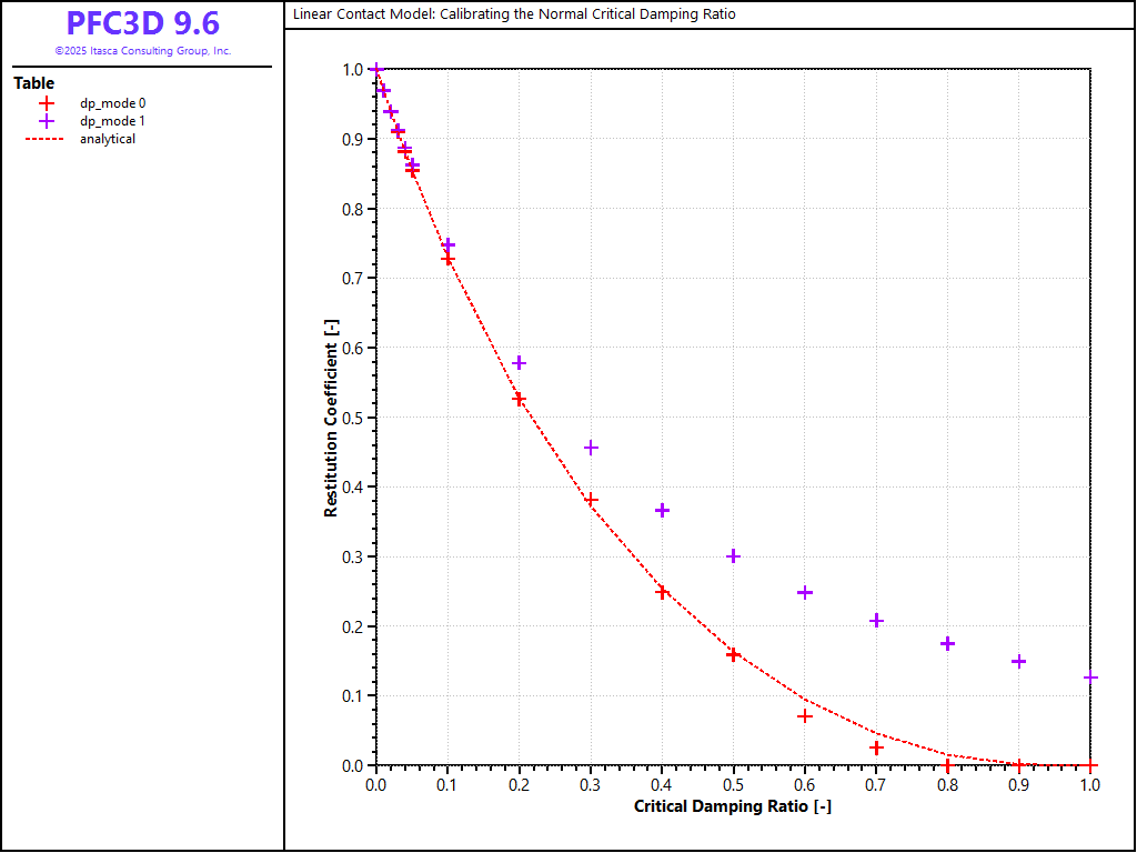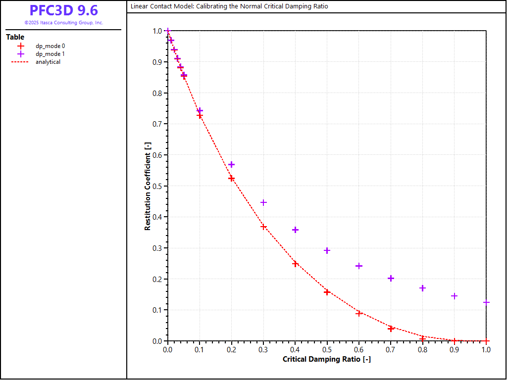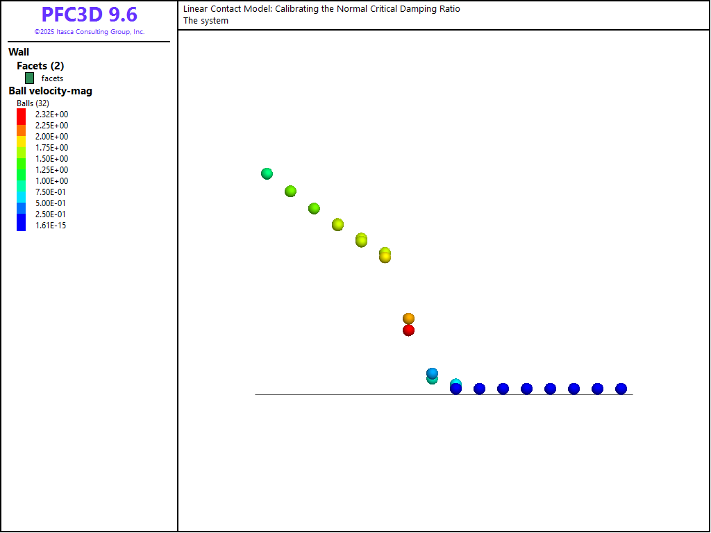 When viscous damping is used in a PFC model with a linear contact model, an appropriate damping constant should be specified for the simulation to reproduce a realistic response. One way to do this is to calibrate the damping by using the relation between the damping constant and the restitution coefficient. [Kawaguchi1992] derived the relation by solving the equations of motion for free vibration with viscous damping. This derivation is presented. Also, the result of drop tests using PFC3D is compared with the analytical solution.