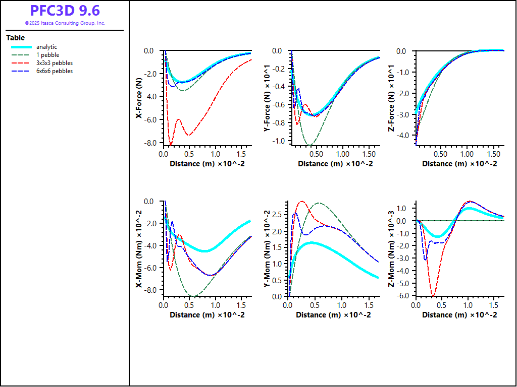 Figure 5: Histories of various attractive force/moment components using rigid blocks and FISH lists for the properties.