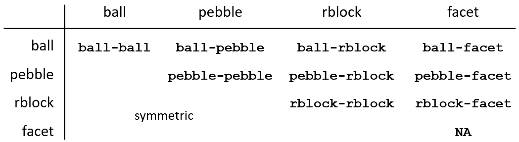 Figure 2: Contact types (nine of them) are based on the types of the two contacting pieces.