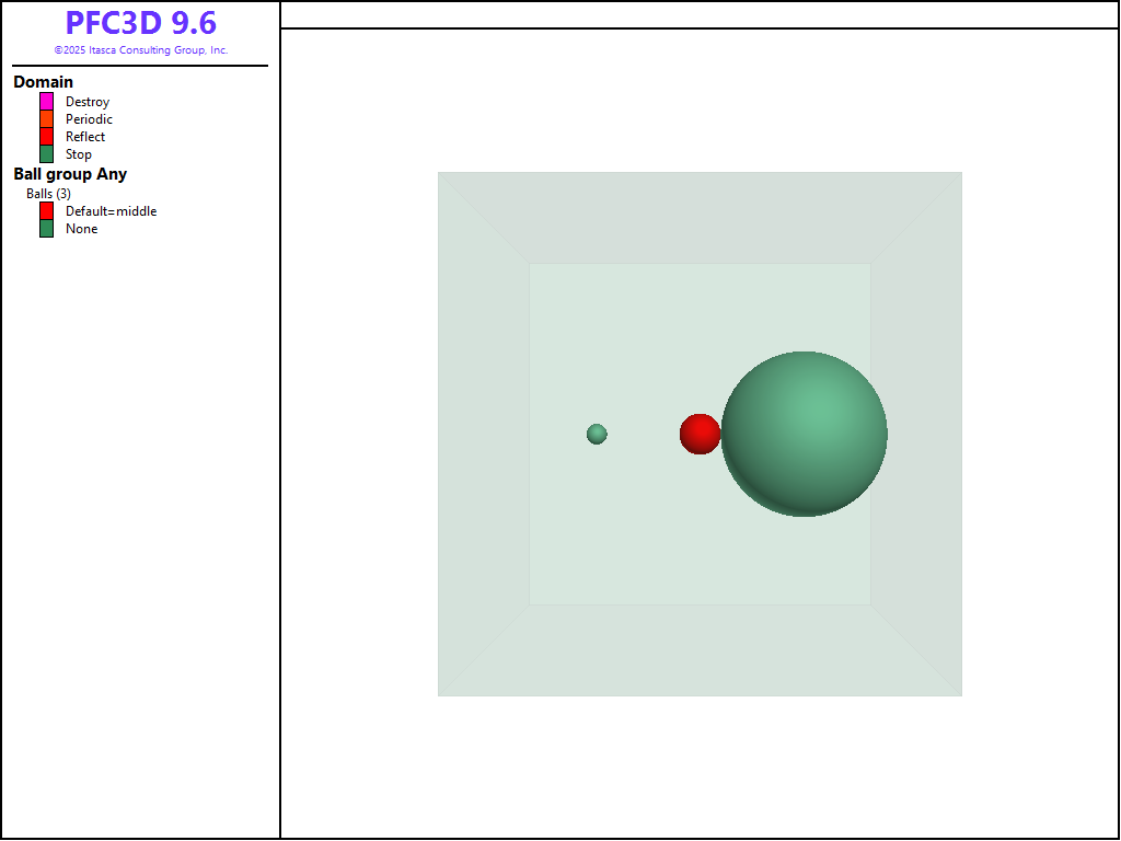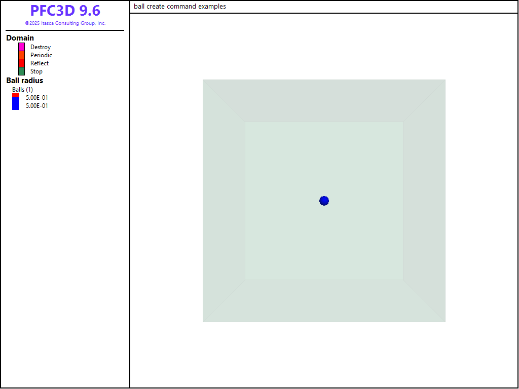 Using the default parameters, a ball with the next ID available and a radius equal to 1/40th of the minimum domain extent will be created at the origin: