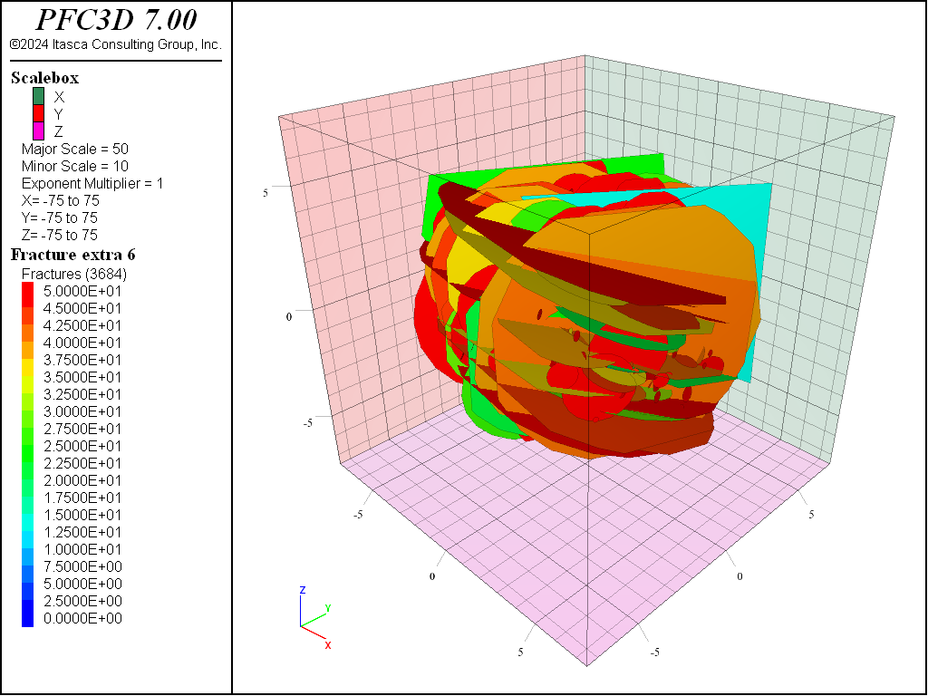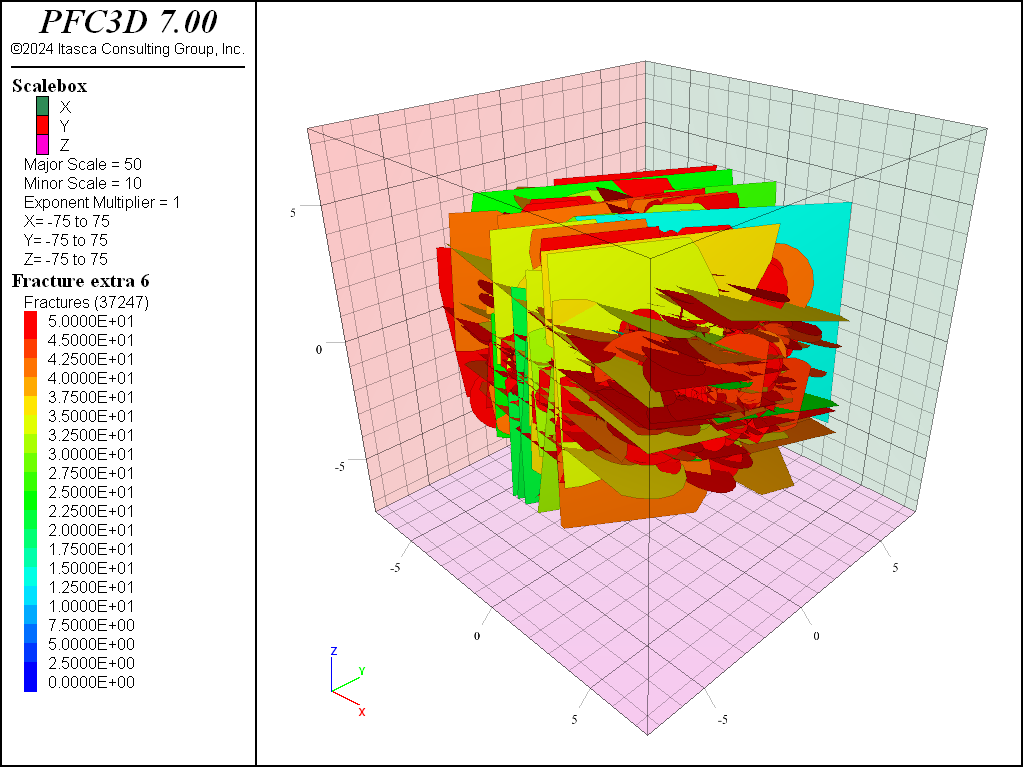 The resulting DFN has approximately 4,000 fractures and is shown in Figure 12 (DFN values colored by extra 6).
